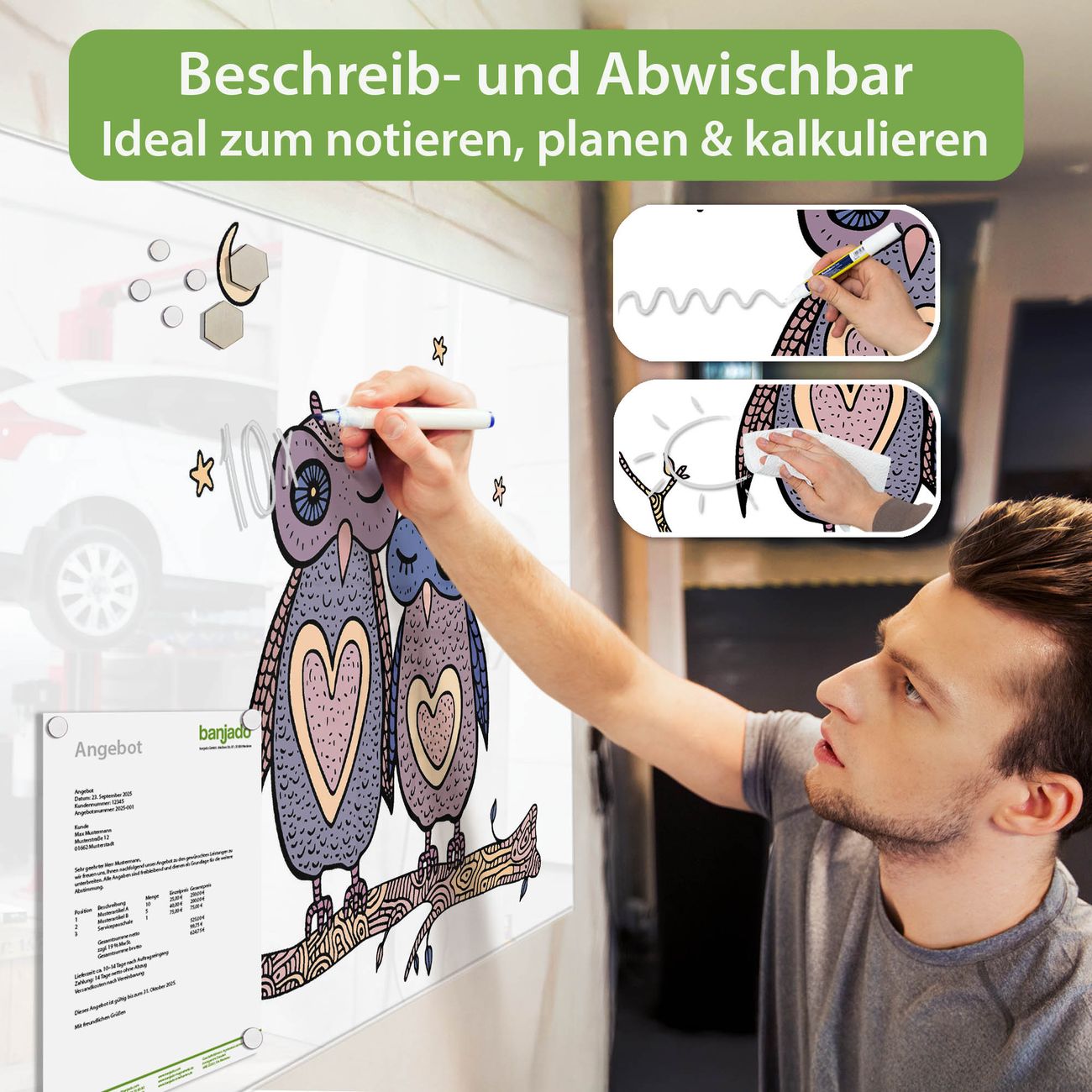 Jede Glas Magnettafel wird in unserer Werkstatt von Hand gefertigt und sorgfältig geprüft. So erhalten Sie ein echtes Qualitätsprodukt, das Funktion und Ästhetik perfekt vereint.?? Warum banjado?