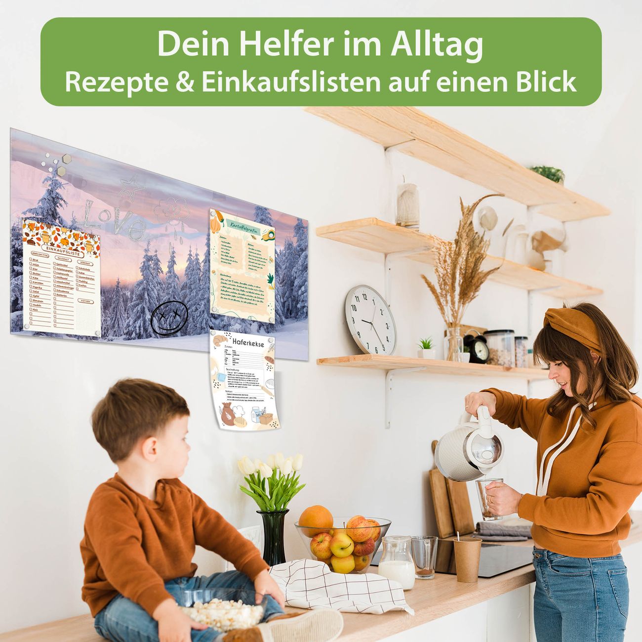 Ein Stück Design, das Ihren Alltag organisiert. Schreiben, heften, inspirieren - alles an einem Ort. Qualität, die man spürt. Montage leicht gemacht. Handwerk mit Herz - veredelt in Sachsen. Einzigartiges Design mit Motiv Motiv Verschneite Berge Beschreibbare Glasoberfläche, leicht zu reinigen Starke Magnetkraft durch Stahlrückwand Inklusive 4 Neodym-Magneten Flexible Montageoptionen Handveredelt in Sachsen - Qualität, die bleibt