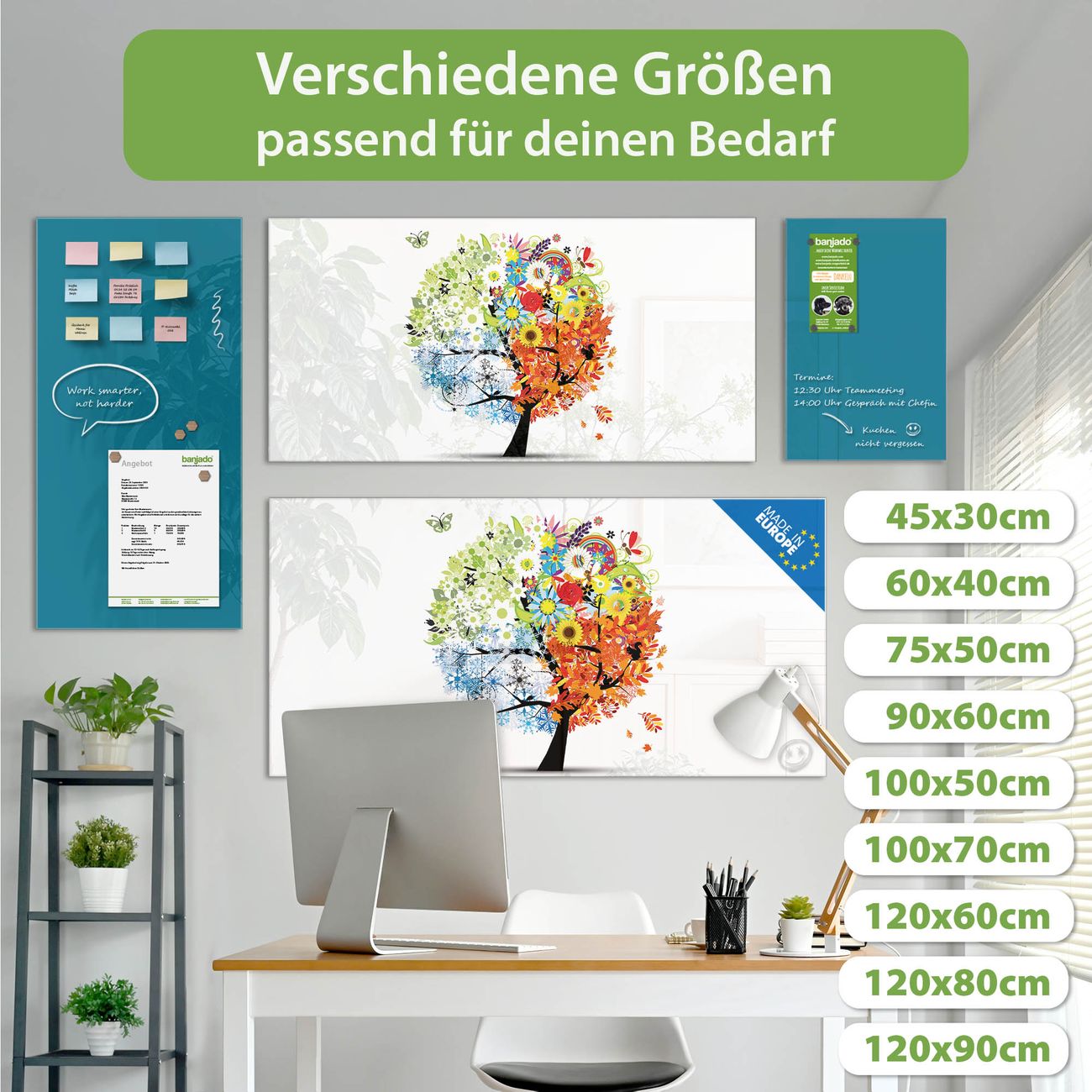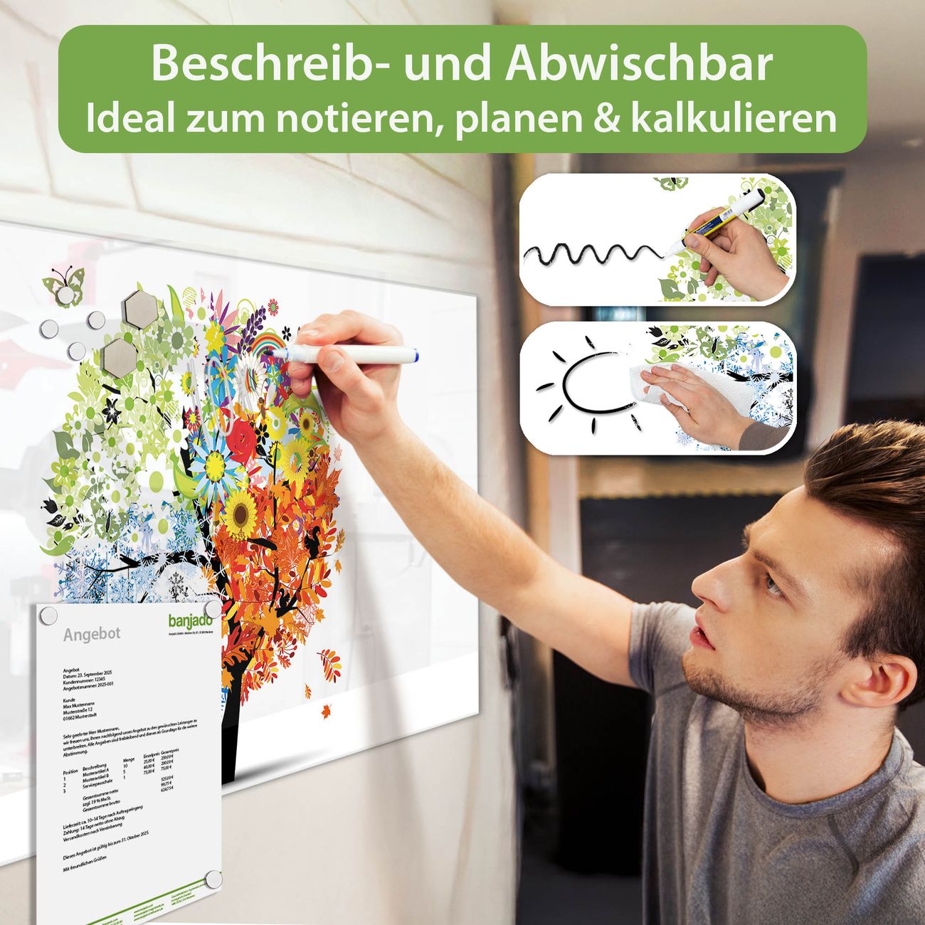 Die banjado Glas Magnettafel mit dem Motiv Motiv Vier Jahreszeiten verbindet Funktionalität mit Stil. Sie ersetzt das Zettelchaos durch klare Strukturen und bringt dabei eine warme, natürliche Atmosphäre in Ihr Zuhause. Ob im Büro, in der Küche oder im Eingangsbereich - dieses Design-Board zieht Blicke an und sorgt für Ordnung mit Charakter.