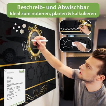 Auf der glatten Glasoberfläche lassen sich Termine, Rezepte oder Notizen ganz einfach mit Kreidestiften festhalten und rückstandslos entfernen. Starke Neodym-Magnete halten Ihre wichtigsten Erinnerungen sicher an Ort und Stelle. So entsteht Ihre ganz persönliche Ideenwand - jeden Tag neu.