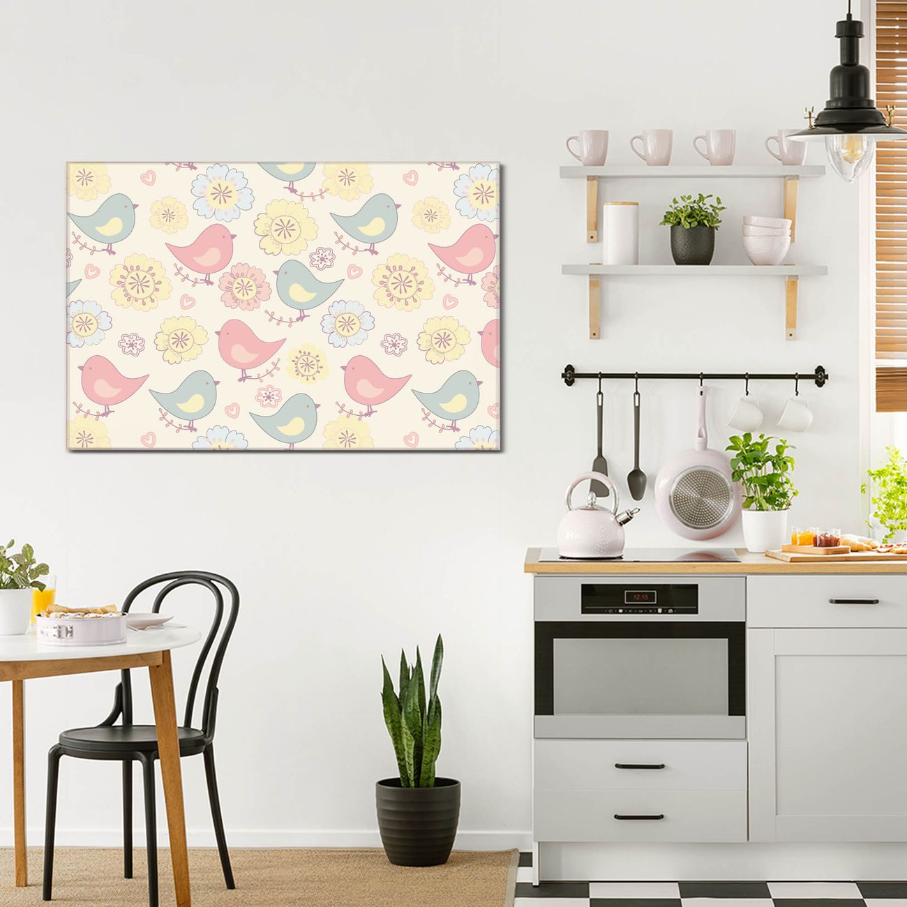 Glas Magnettafel im Querformat Vögel Pastell