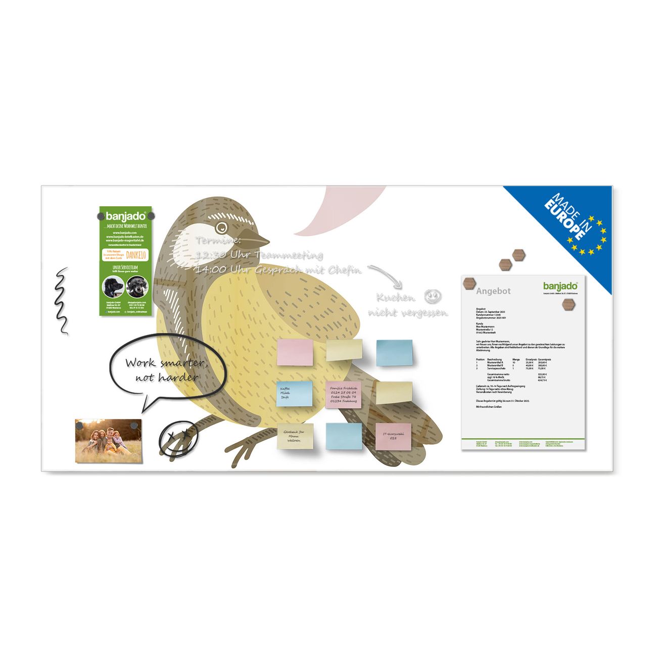 Glas Magnettafel im Querformat Motiv Vogel mit Sprechblase