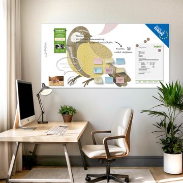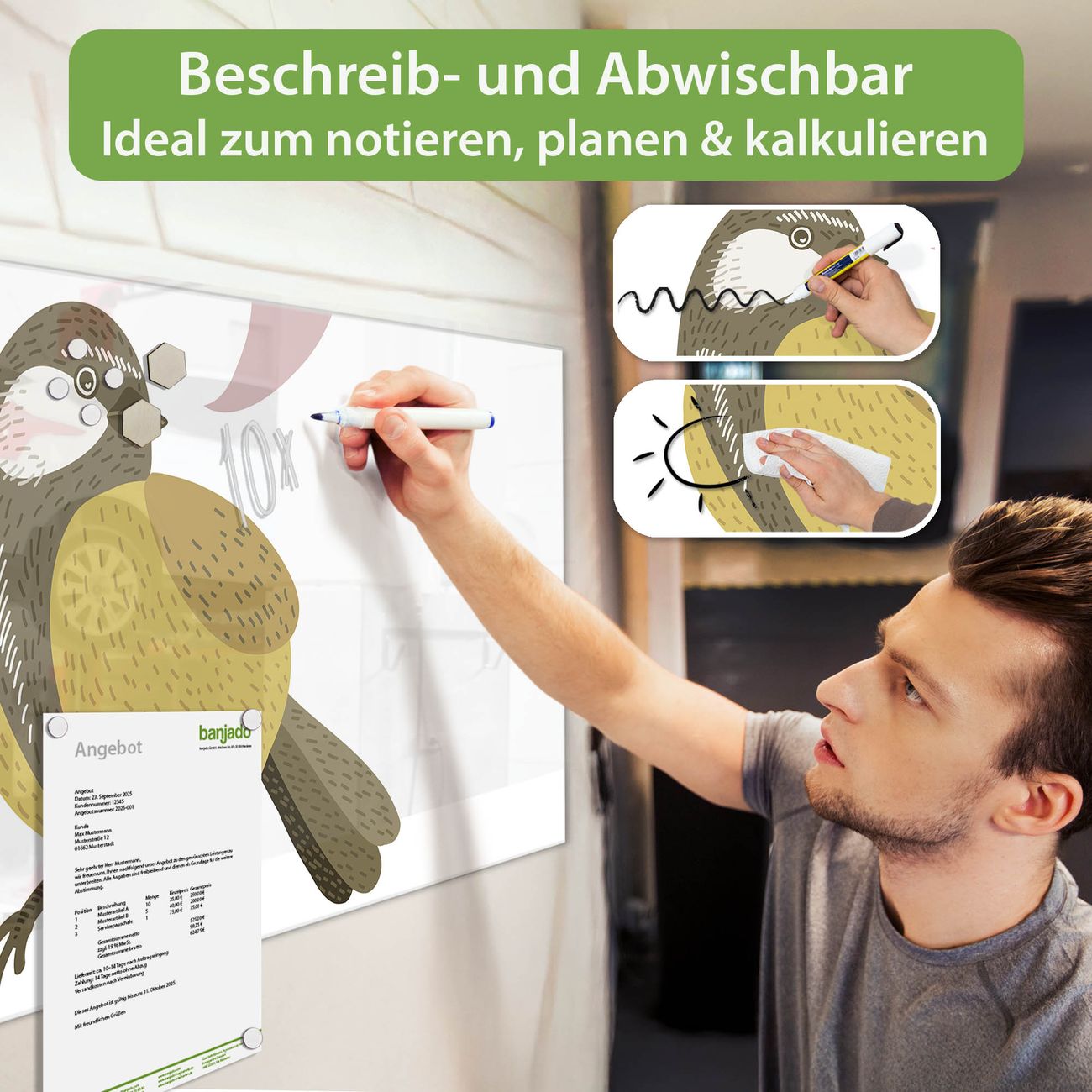 Die banjado Glas Magnettafel mit dem Motiv Motiv Vogel mit Sprechblase verbindet Funktionalität mit Stil. Sie ersetzt das Zettelchaos durch klare Strukturen und bringt dabei eine warme, natürliche Atmosphäre in Ihr Zuhause. Ob im Büro, in der Küche oder im Eingangsbereich - dieses Design-Board zieht Blicke an und sorgt für Ordnung mit Charakter.