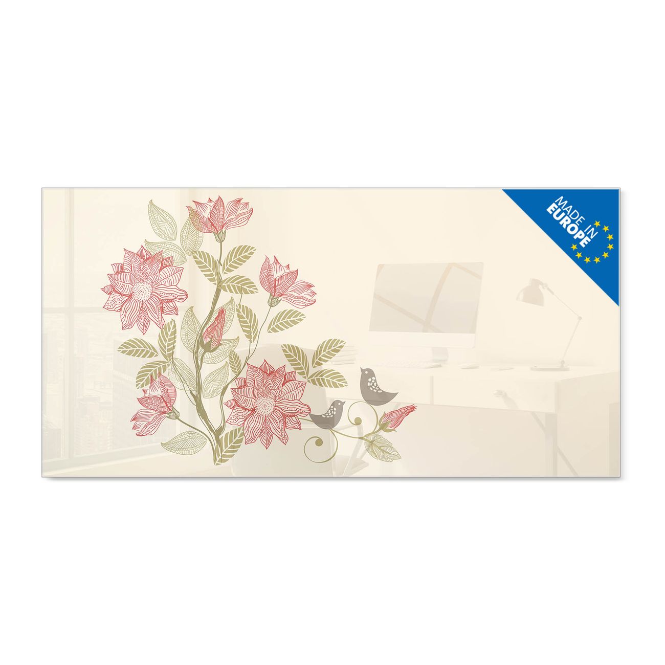 Glas Magnettafel im Querformat Motiv Vogelpaar