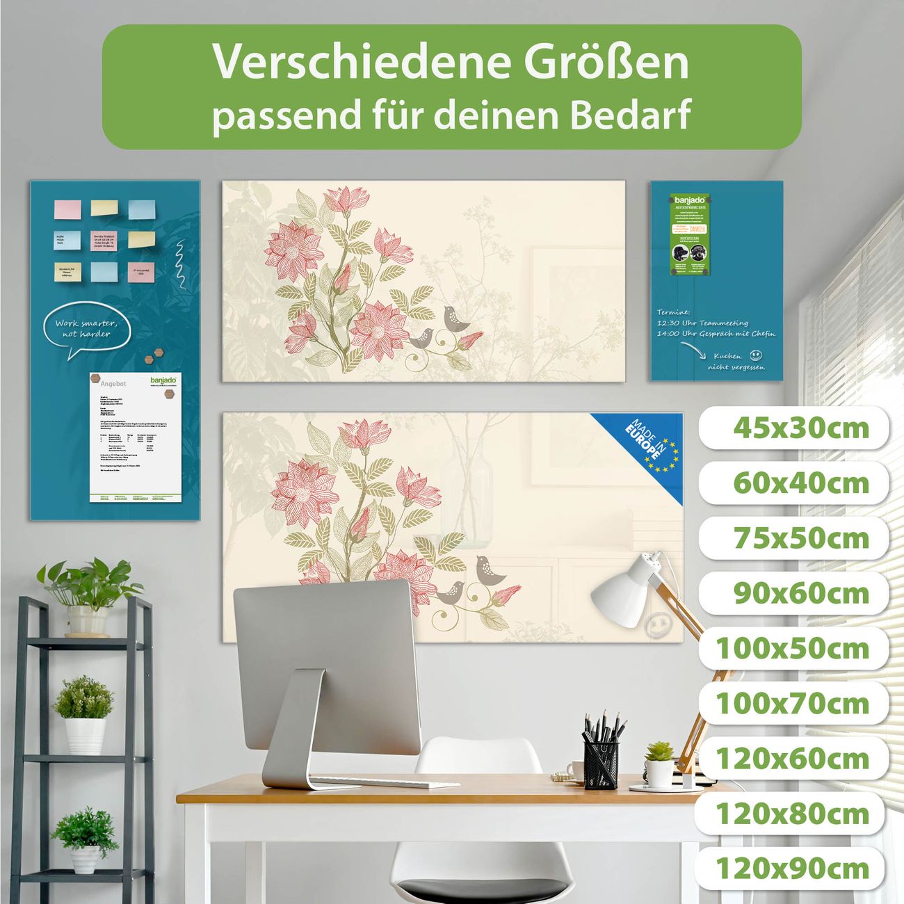 Jede Glas Magnettafel wird in unserer Werkstatt von Hand gefertigt und sorgfältig geprüft. So erhalten Sie ein echtes Qualitätsprodukt, das Funktion und Ästhetik perfekt vereint.?? Warum banjado?
