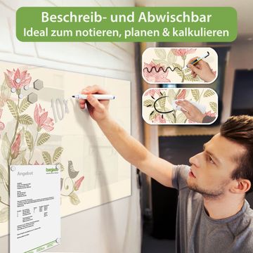 Die banjado Glas Magnettafel mit dem Motiv Motiv Vogelpaar verbindet Funktionalität mit Stil. Sie ersetzt das Zettelchaos durch klare Strukturen und bringt dabei eine warme, natürliche Atmosphäre in Ihr Zuhause. Ob im Büro, in der Küche oder im Eingangsbereich - dieses Design-Board zieht Blicke an und sorgt für Ordnung mit Charakter.
