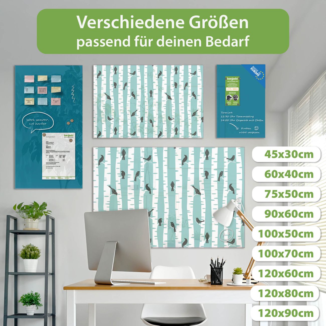 Ein Stück Design, das Ihren Alltag organisiert. Schreiben, heften, inspirieren - alles an einem Ort. Qualität, die man spürt. Montage leicht gemacht. Handwerk mit Herz - veredelt in Sachsen. Einzigartiges Design mit Motiv Motiv Stare Und Birken Beschreibbare Glasoberfläche, leicht zu reinigen Starke Magnetkraft durch Stahlrückwand Inklusive 4 Neodym-Magneten Flexible Montageoptionen Handveredelt in Sachsen - Qualität, die bleibt
