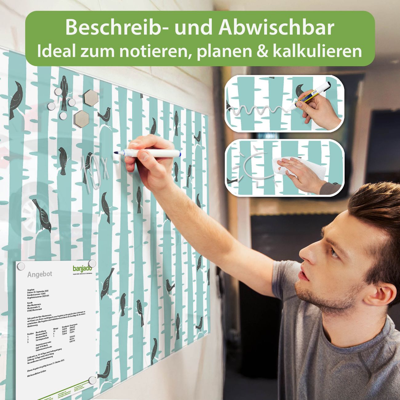 Die banjado Glas Magnettafel mit dem Motiv Motiv Stare Und Birken verbindet Funktionalität mit Stil. Sie ersetzt das Zettelchaos durch klare Strukturen und bringt dabei eine warme, natürliche Atmosphäre in Ihr Zuhause. Ob im Büro, in der Küche oder im Eingangsbereich - dieses Design-Board zieht Blicke an und sorgt für Ordnung mit Charakter.