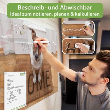 Die banjado Glas Magnettafel mit dem Motiv Motiv Wachhund Jack Russel verbindet Funktionalität mit Stil. Sie ersetzt das Zettelchaos durch klare Strukturen und bringt dabei eine warme, natürliche Atmosphäre in Ihr Zuhause. Ob im Büro, in der Küche oder im Eingangsbereich - dieses Design-Board zieht Blicke an und sorgt für Ordnung mit Charakter.