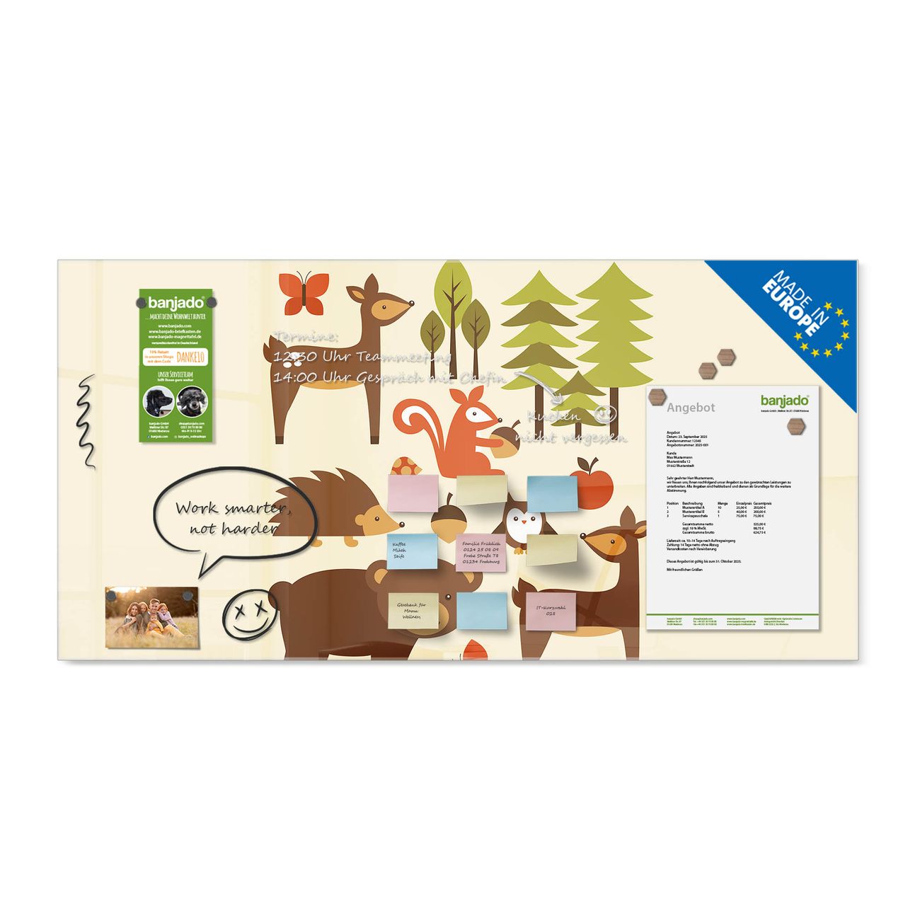 Glas Magnettafel im Querformat Motiv Waldfreunde