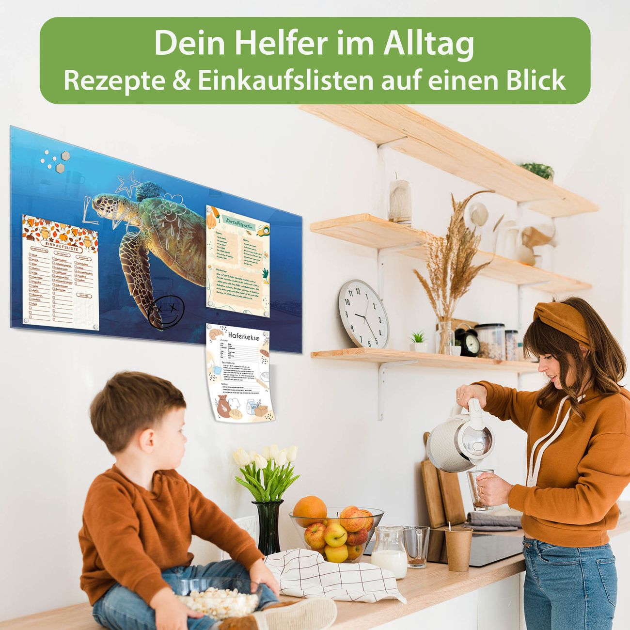 Ein Stück Design, das Ihren Alltag organisiert. Schreiben, heften, inspirieren - alles an einem Ort. Qualität, die man spürt. Montage leicht gemacht. Handwerk mit Herz - veredelt in Sachsen. Einzigartiges Design mit Motiv Motiv Wasserschildkröte Beschreibbare Glasoberfläche, leicht zu reinigen Starke Magnetkraft durch Stahlrückwand Inklusive 4 Neodym-Magneten Flexible Montageoptionen Handveredelt in Sachsen - Qualität, die bleibt
