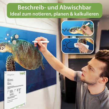 Die banjado Glas Magnettafel mit dem Motiv Motiv Wasserschildkröte verbindet Funktionalität mit Stil. Sie ersetzt das Zettelchaos durch klare Strukturen und bringt dabei eine warme, natürliche Atmosphäre in Ihr Zuhause. Ob im Büro, in der Küche oder im Eingangsbereich - dieses Design-Board zieht Blicke an und sorgt für Ordnung mit Charakter.