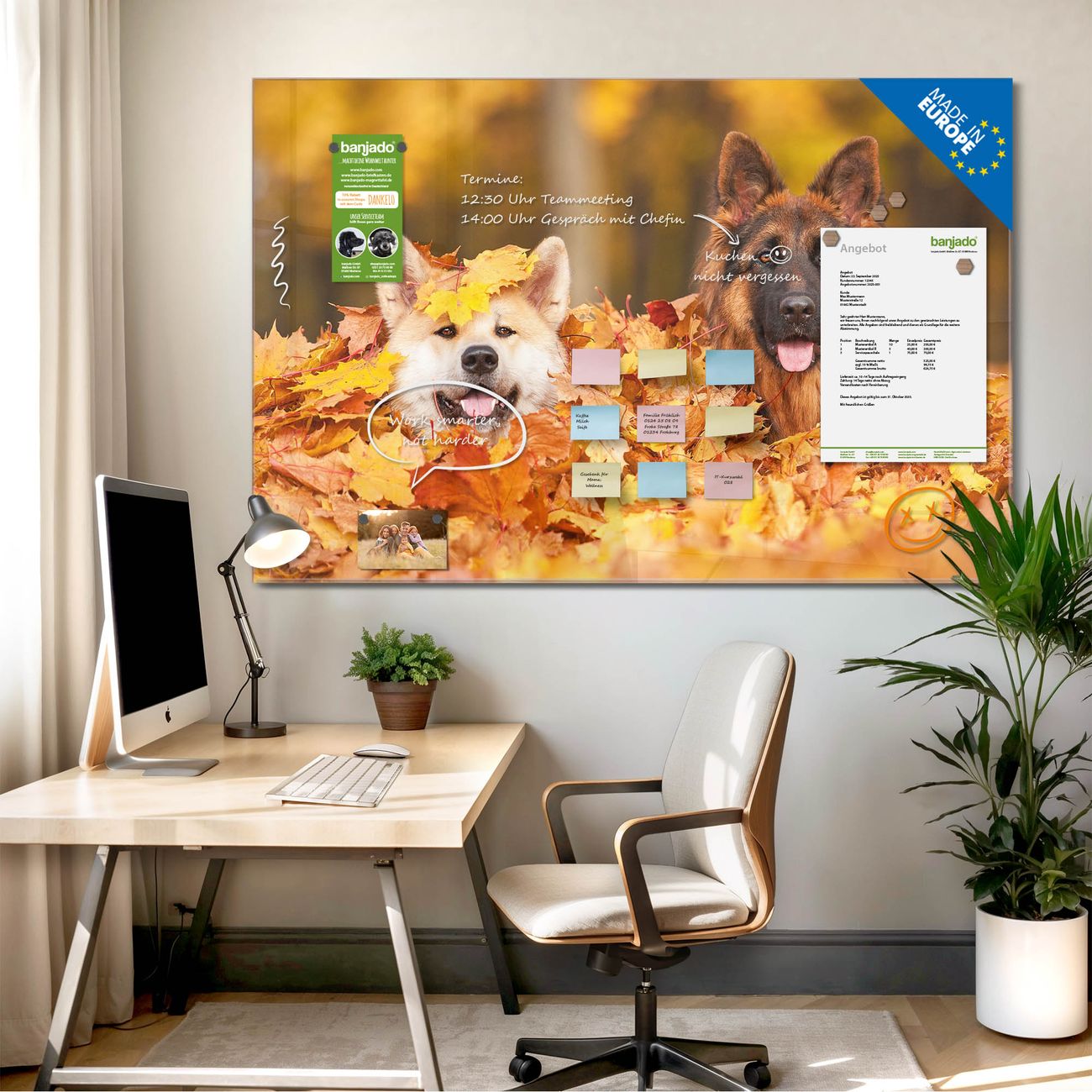 Die banjado Glas Magnettafel mit dem Motiv Motiv Wayne und Wanda verbindet Funktionalität mit Stil. Sie ersetzt das Zettelchaos durch klare Strukturen und bringt dabei eine warme, natürliche Atmosphäre in Ihr Zuhause. Ob im Büro, in der Küche oder im Eingangsbereich - dieses Design-Board zieht Blicke an und sorgt für Ordnung mit Charakter.