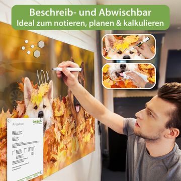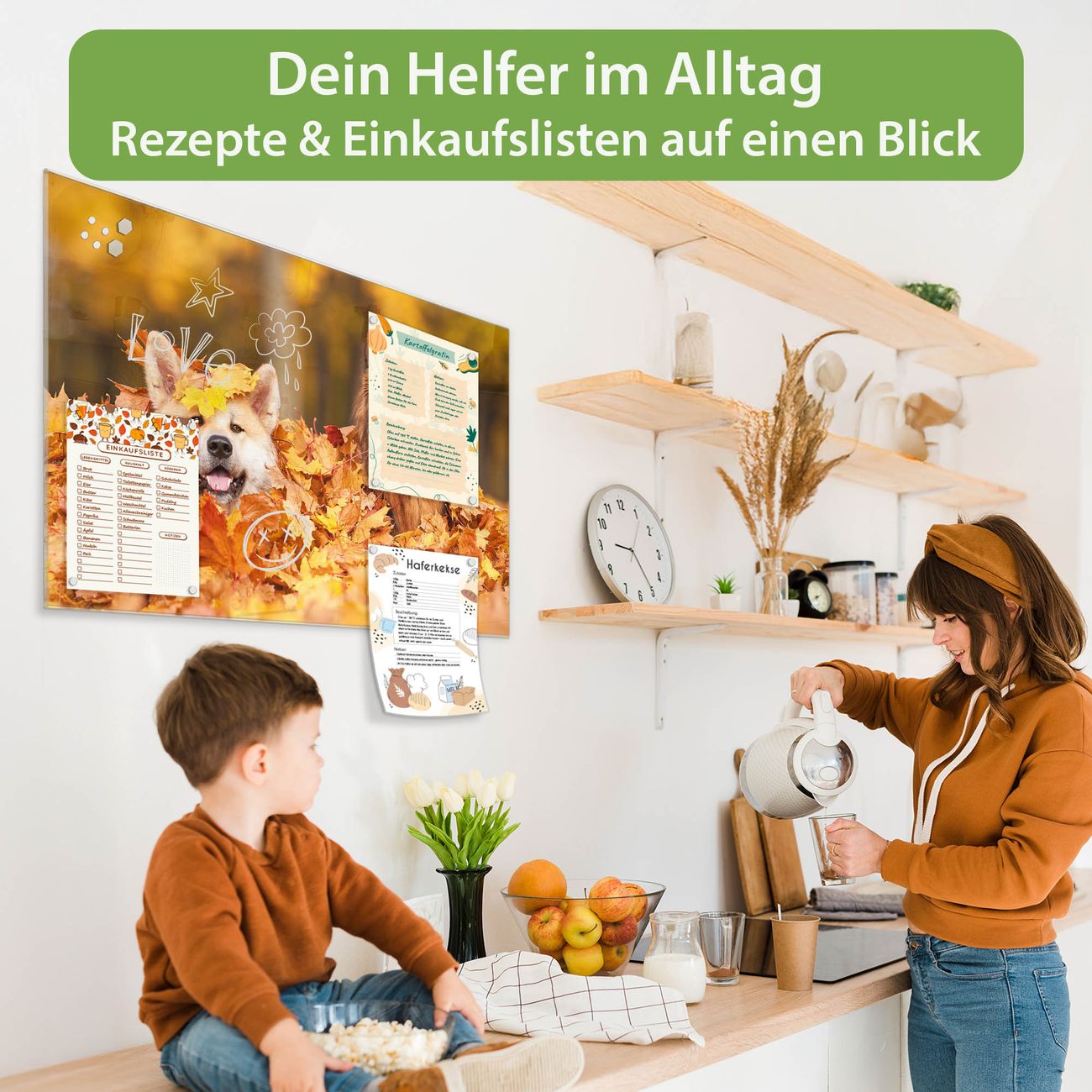Auf der glatten Glasoberfläche lassen sich Termine, Rezepte oder Notizen ganz einfach mit Kreidestiften festhalten und rückstandslos entfernen. Starke Neodym-Magnete halten Ihre wichtigsten Erinnerungen sicher an Ort und Stelle. So entsteht Ihre ganz persönliche Ideenwand - jeden Tag neu.