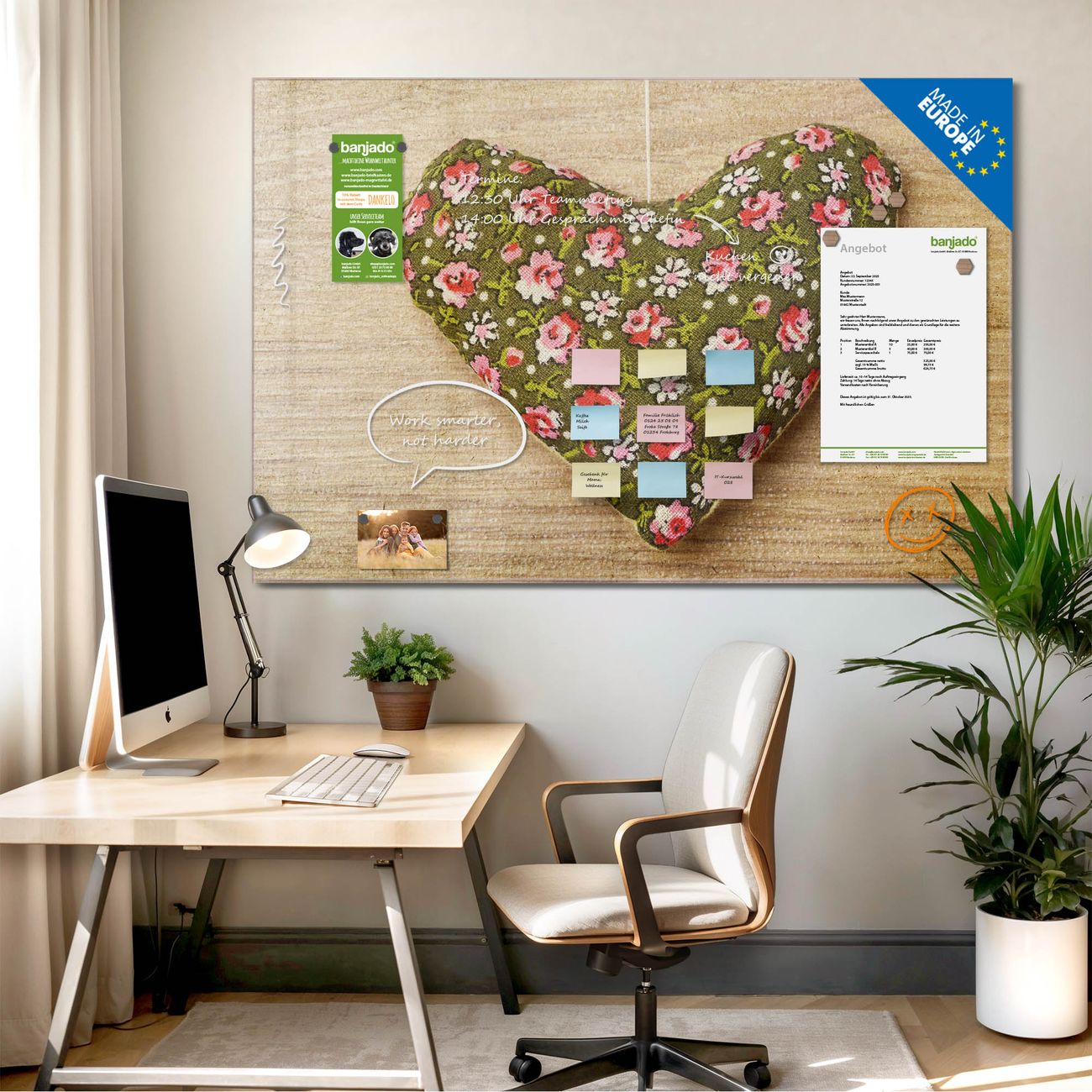 Jede Glas Magnettafel wird in unserer Werkstatt von Hand gefertigt und sorgfältig geprüft. So erhalten Sie ein echtes Qualitätsprodukt, das Funktion und Ästhetik perfekt vereint.?? Warum banjado?