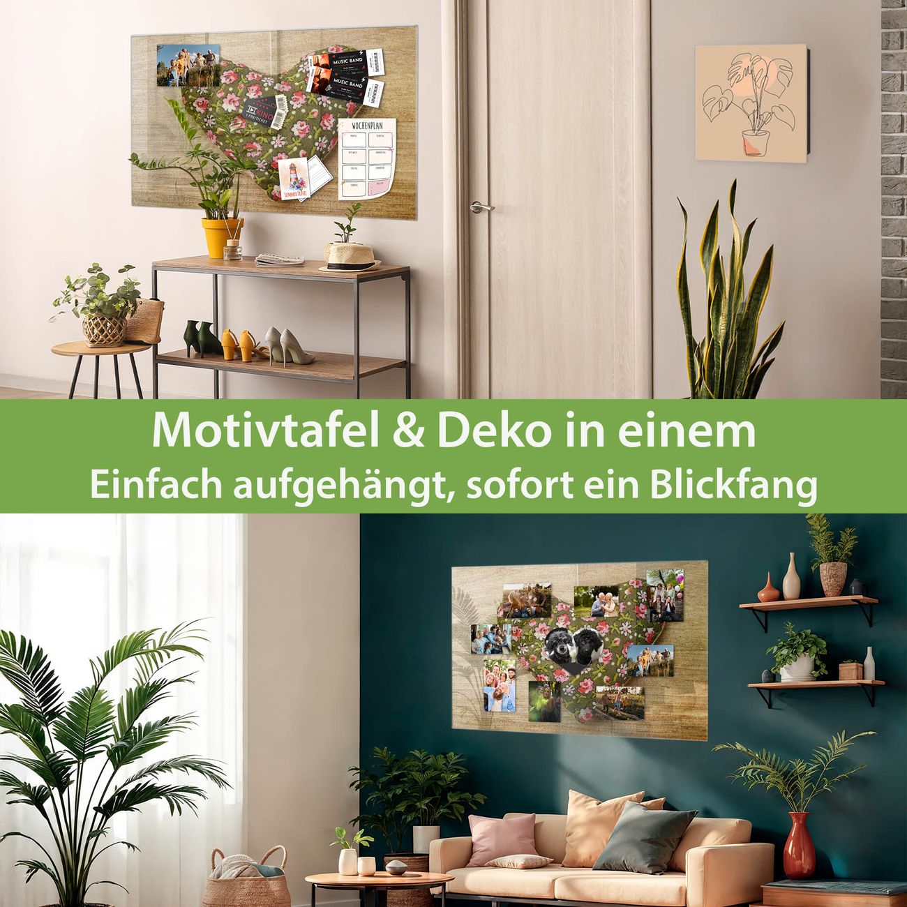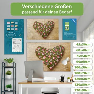 Die banjado Glas Magnettafel mit dem Motiv Motiv Weiches Herz verbindet Funktionalität mit Stil. Sie ersetzt das Zettelchaos durch klare Strukturen und bringt dabei eine warme, natürliche Atmosphäre in Ihr Zuhause. Ob im Büro, in der Küche oder im Eingangsbereich - dieses Design-Board zieht Blicke an und sorgt für Ordnung mit Charakter.