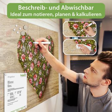 Auf der glatten Glasoberfläche lassen sich Termine, Rezepte oder Notizen ganz einfach mit Kreidestiften festhalten und rückstandslos entfernen. Starke Neodym-Magnete halten Ihre wichtigsten Erinnerungen sicher an Ort und Stelle. So entsteht Ihre ganz persönliche Ideenwand - jeden Tag neu.