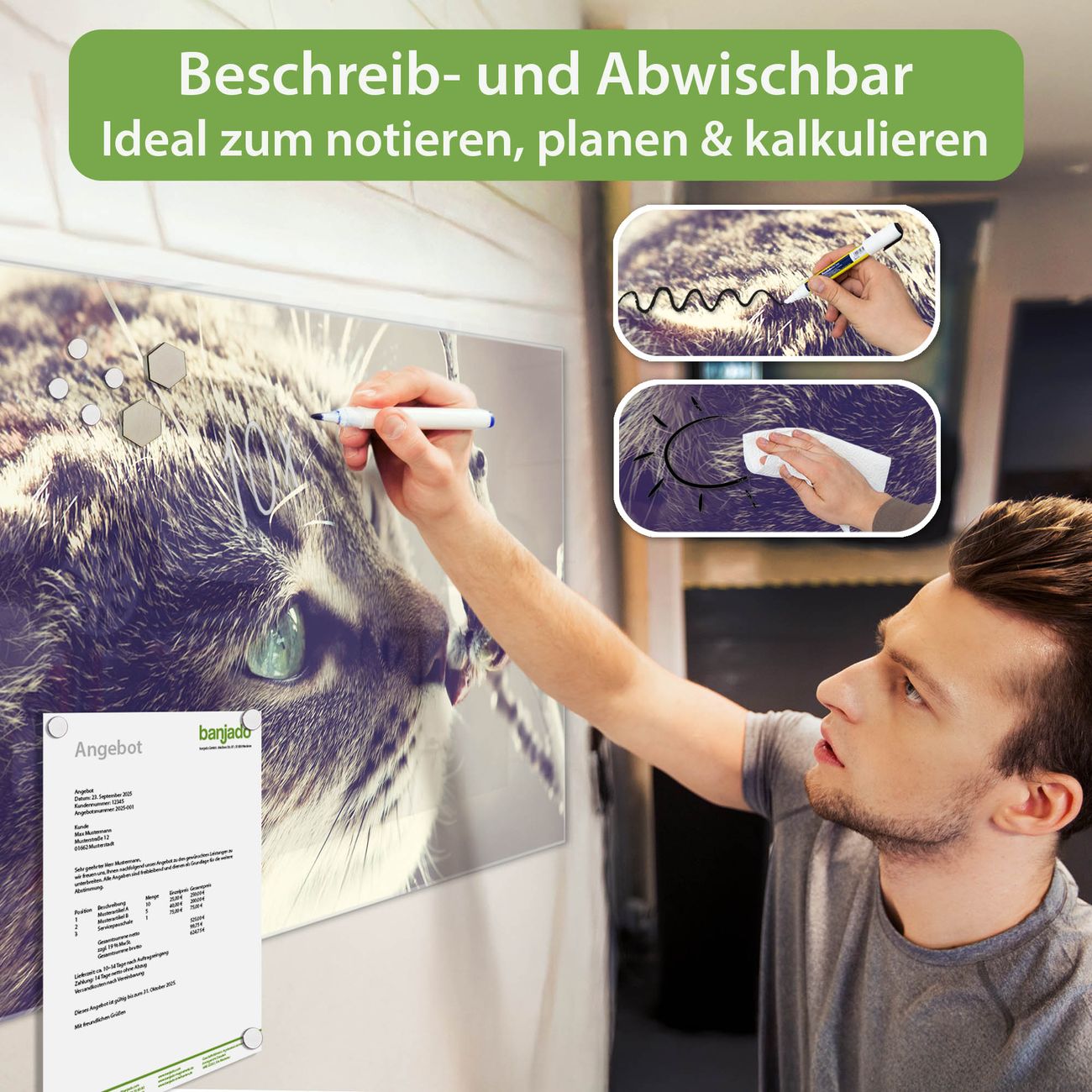 Bitte beachten Sie, dass ausschliessliche spezielle Magnete an der Glastafel haften. Wir empfehlen banjado Neodym Magnete, diese sind durch uns auf Wirksamkeit geprüft.