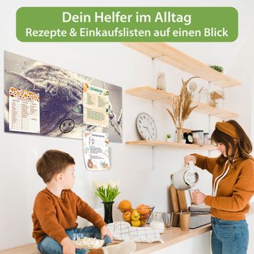Auf der glatten Glasoberfläche lassen sich Termine, Rezepte oder Notizen ganz einfach mit Kreidestiften festhalten und rückstandslos entfernen. Starke Neodym-Magnete halten Ihre wichtigsten Erinnerungen sicher an Ort und Stelle. So entsteht Ihre ganz persönliche Ideenwand - jeden Tag neu.