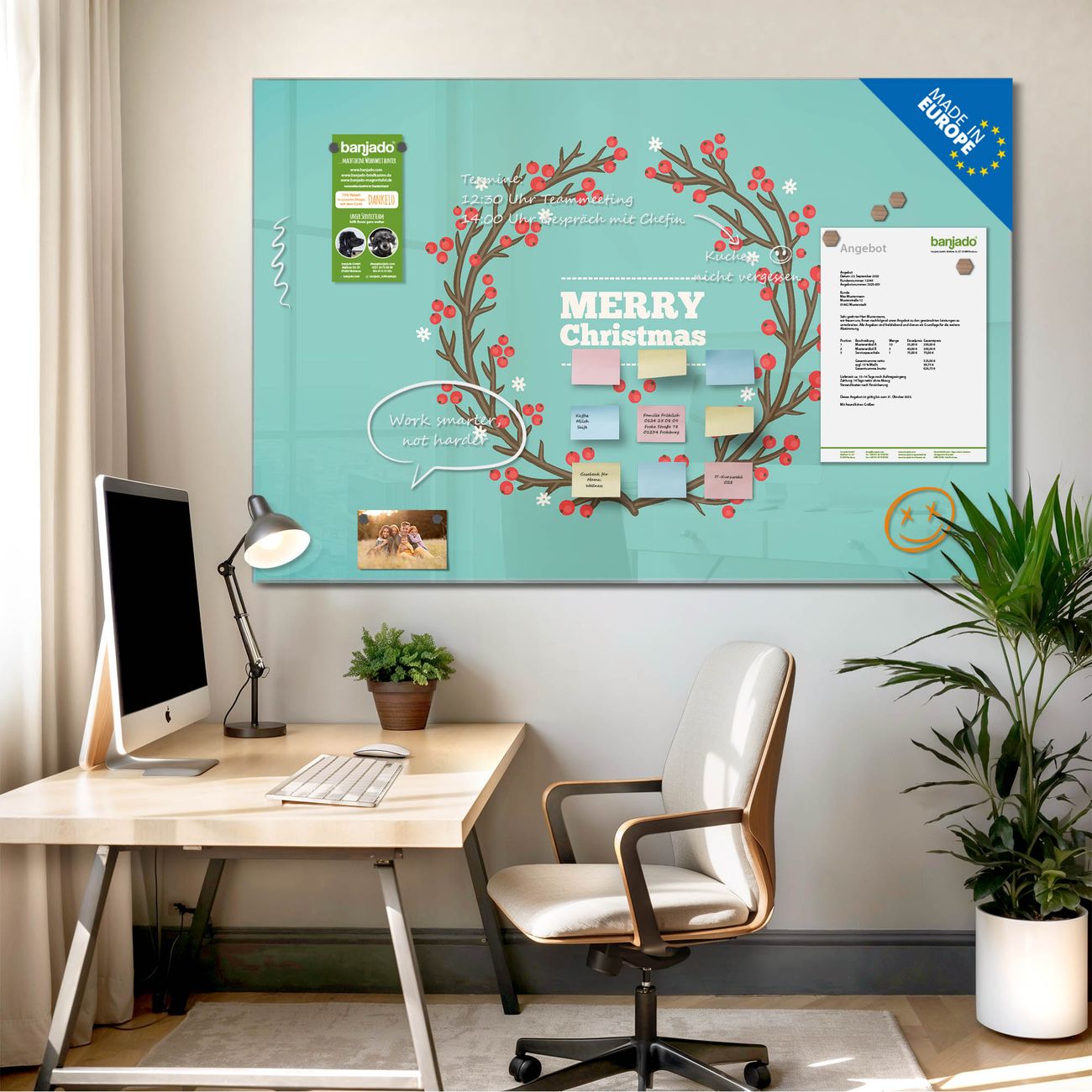 Die banjado Glas Magnettafel mit dem Motiv Motiv Weihnachtsranke verbindet Funktionalität mit Stil. Sie ersetzt das Zettelchaos durch klare Strukturen und bringt dabei eine warme, natürliche Atmosphäre in Ihr Zuhause. Ob im Büro, in der Küche oder im Eingangsbereich - dieses Design-Board zieht Blicke an und sorgt für Ordnung mit Charakter.