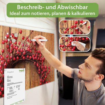 Die banjado Glas Magnettafel mit dem Motiv Motiv Weihnachtskranz verbindet Funktionalität mit Stil. Sie ersetzt das Zettelchaos durch klare Strukturen und bringt dabei eine warme, natürliche Atmosphäre in Ihr Zuhause. Ob im Büro, in der Küche oder im Eingangsbereich - dieses Design-Board zieht Blicke an und sorgt für Ordnung mit Charakter.