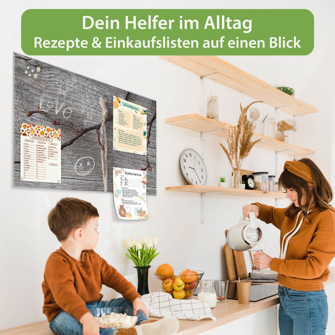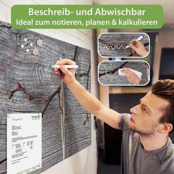 Auf der glatten Glasoberfläche lassen sich Termine, Rezepte oder Notizen ganz einfach mit Kreidestiften festhalten und rückstandslos entfernen. Starke Neodym-Magnete halten Ihre wichtigsten Erinnerungen sicher an Ort und Stelle. So entsteht Ihre ganz persönliche Ideenwand - jeden Tag neu.