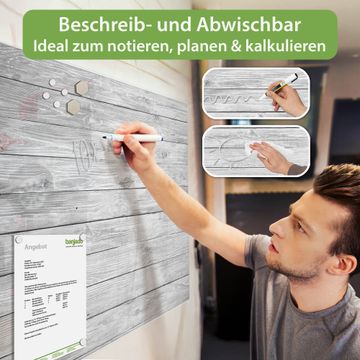 Die banjado Glas Magnettafel mit dem Motiv Motiv Weiß Gebeizt verbindet Funktionalität mit Stil. Sie ersetzt das Zettelchaos durch klare Strukturen und bringt dabei eine warme, natürliche Atmosphäre in Ihr Zuhause. Ob im Büro, in der Küche oder im Eingangsbereich - dieses Design-Board zieht Blicke an und sorgt für Ordnung mit Charakter.