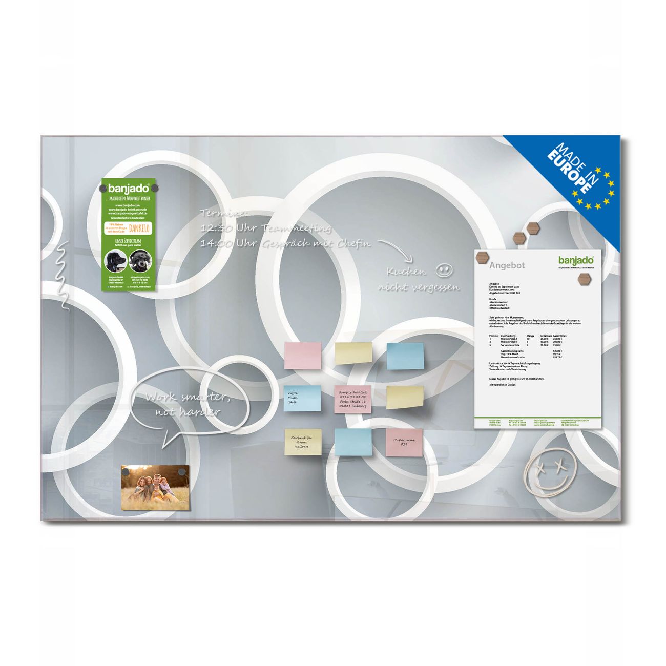 Glas Magnettafel im Querformat Motiv Weiße Ringe
