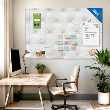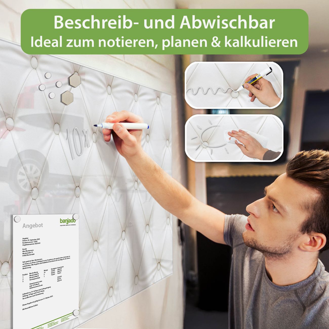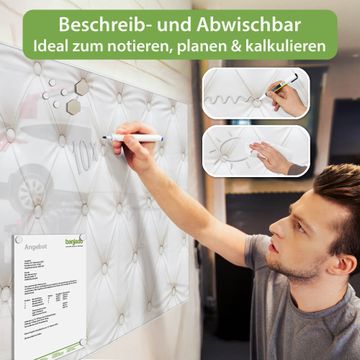 Die banjado Glas Magnettafel mit dem Motiv Motiv Weißes Polster verbindet Funktionalität mit Stil. Sie ersetzt das Zettelchaos durch klare Strukturen und bringt dabei eine warme, natürliche Atmosphäre in Ihr Zuhause. Ob im Büro, in der Küche oder im Eingangsbereich - dieses Design-Board zieht Blicke an und sorgt für Ordnung mit Charakter.