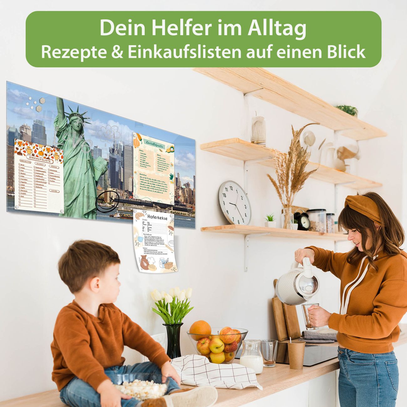 Auf der glatten Glasoberfläche lassen sich Termine, Rezepte oder Notizen ganz einfach mit Kreidestiften festhalten und rückstandslos entfernen. Starke Neodym-Magnete halten Ihre wichtigsten Erinnerungen sicher an Ort und Stelle. So entsteht Ihre ganz persönliche Ideenwand - jeden Tag neu.
