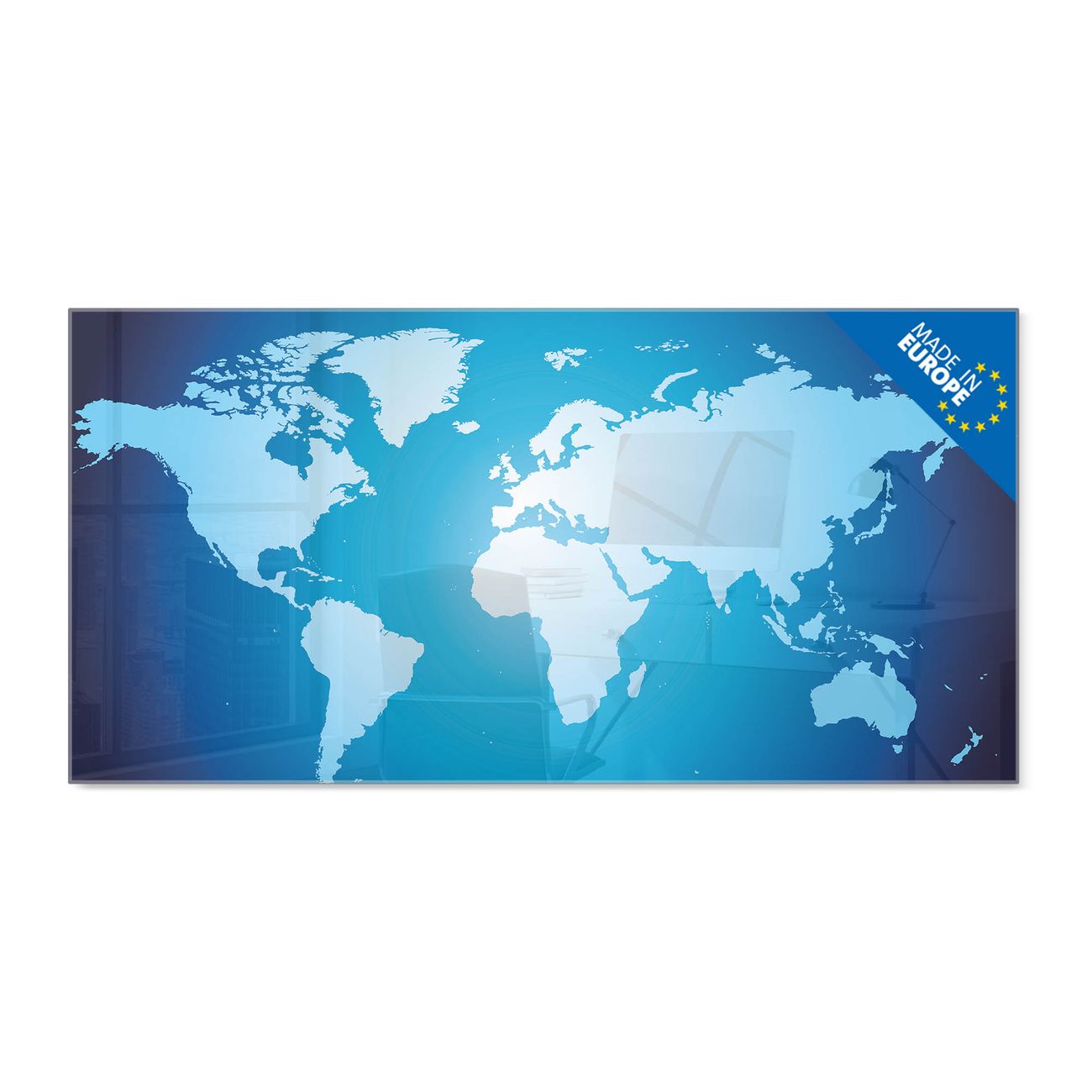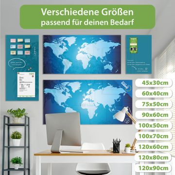 Glas Magnettafel im Querformat Motiv Weltkarte