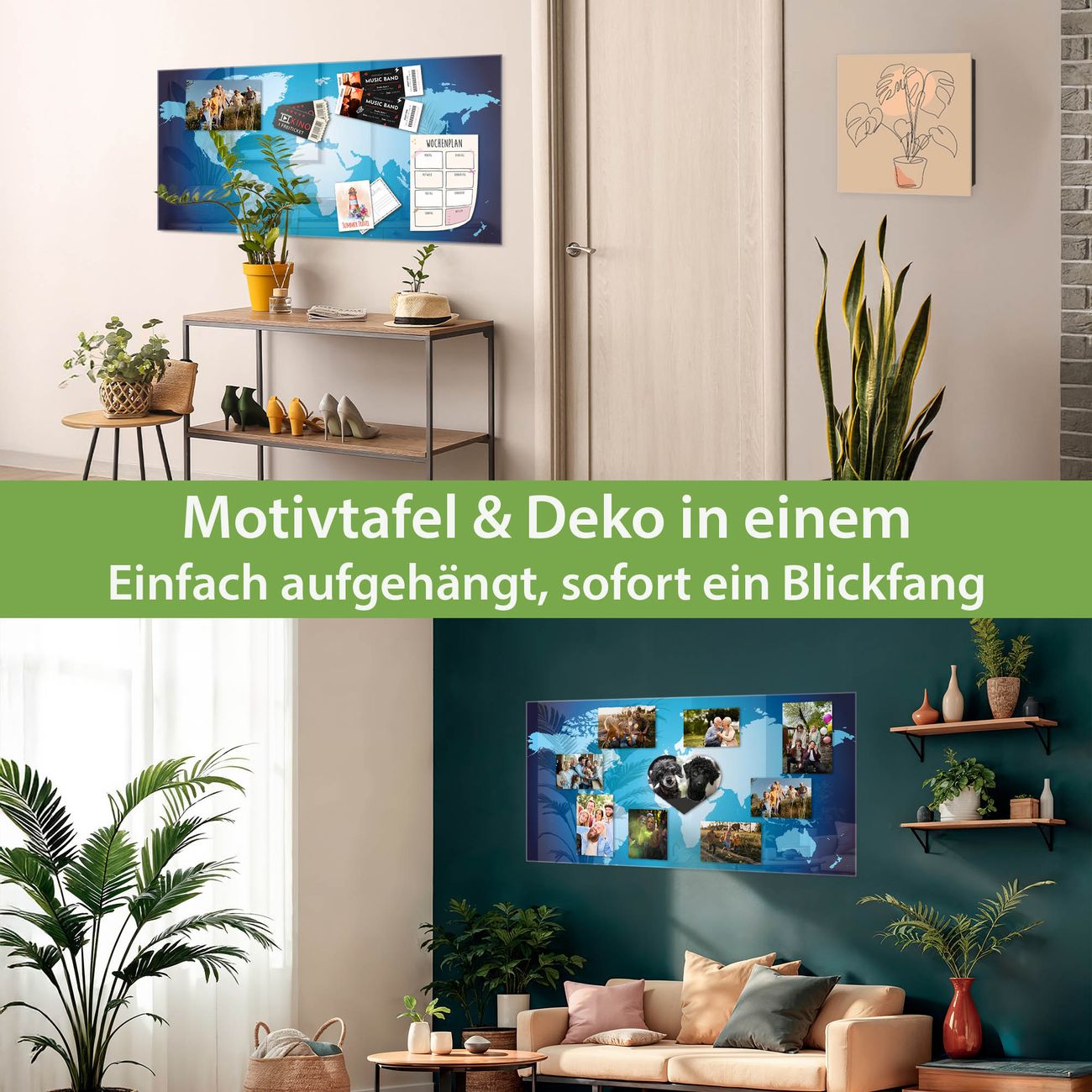 Die banjado Glas Magnettafel mit dem Motiv Motiv Weltkarte verbindet Funktionalität mit Stil. Sie ersetzt das Zettelchaos durch klare Strukturen und bringt dabei eine warme, natürliche Atmosphäre in Ihr Zuhause. Ob im Büro, in der Küche oder im Eingangsbereich - dieses Design-Board zieht Blicke an und sorgt für Ordnung mit Charakter.