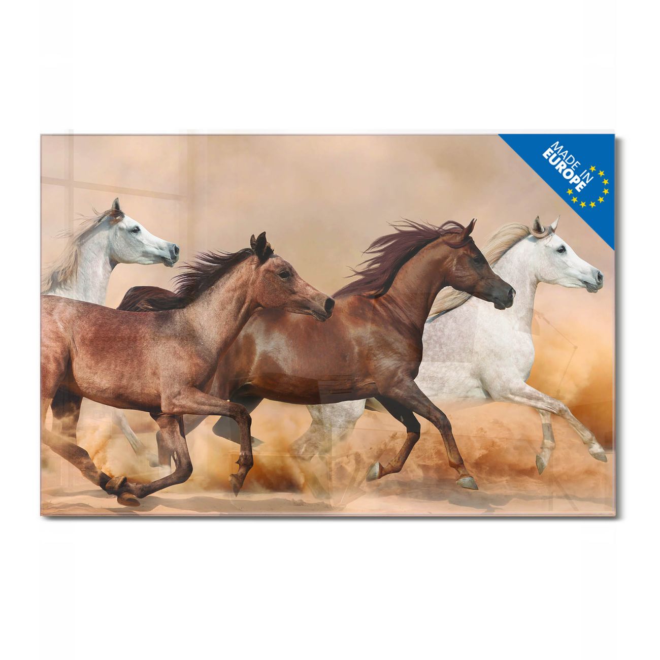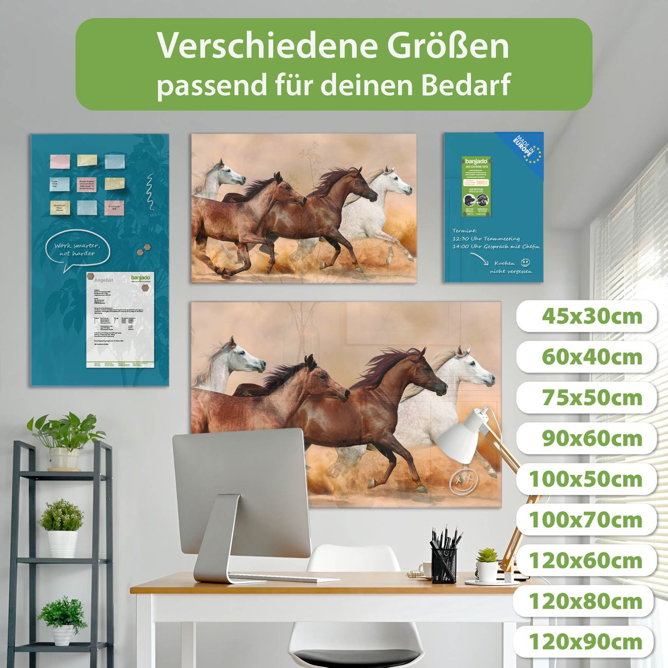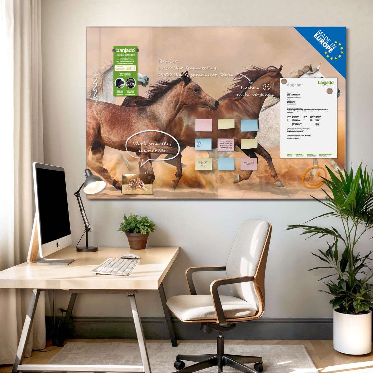 Glas Magnettafel im Querformat Motiv Wilde Pferde