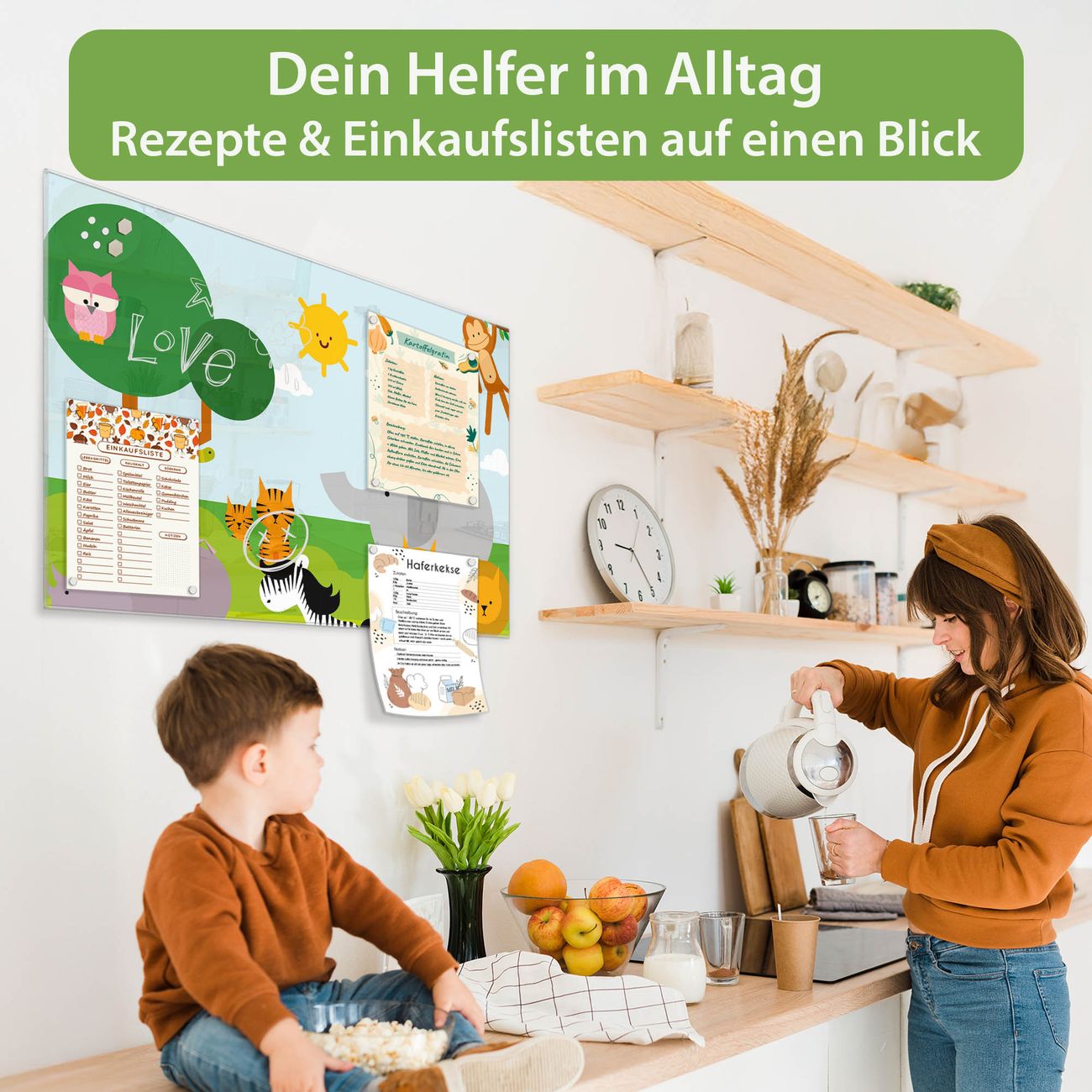 Auf der glatten Glasoberfläche lassen sich Termine, Rezepte oder Notizen ganz einfach mit Kreidestiften festhalten und rückstandslos entfernen. Starke Neodym-Magnete halten Ihre wichtigsten Erinnerungen sicher an Ort und Stelle. So entsteht Ihre ganz persönliche Ideenwand - jeden Tag neu.
