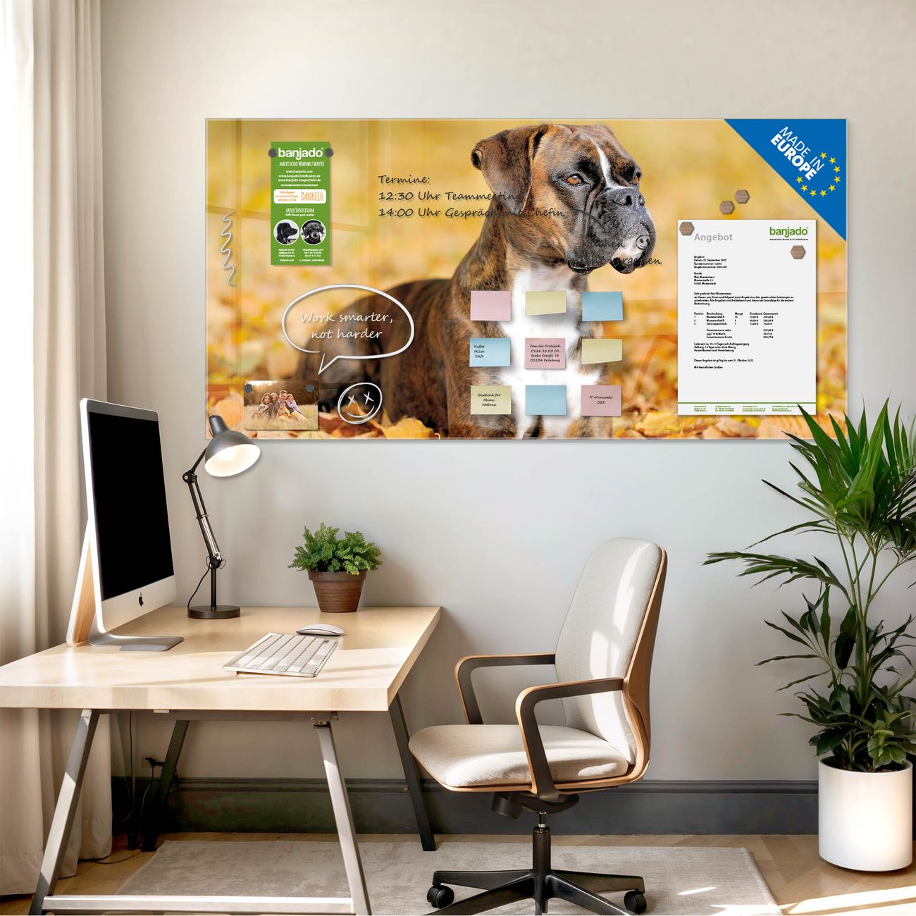 Jede Glas Magnettafel wird in unserer Werkstatt von Hand gefertigt und sorgfältig geprüft. So erhalten Sie ein echtes Qualitätsprodukt, das Funktion und Ästhetik perfekt vereint.?? Warum banjado?