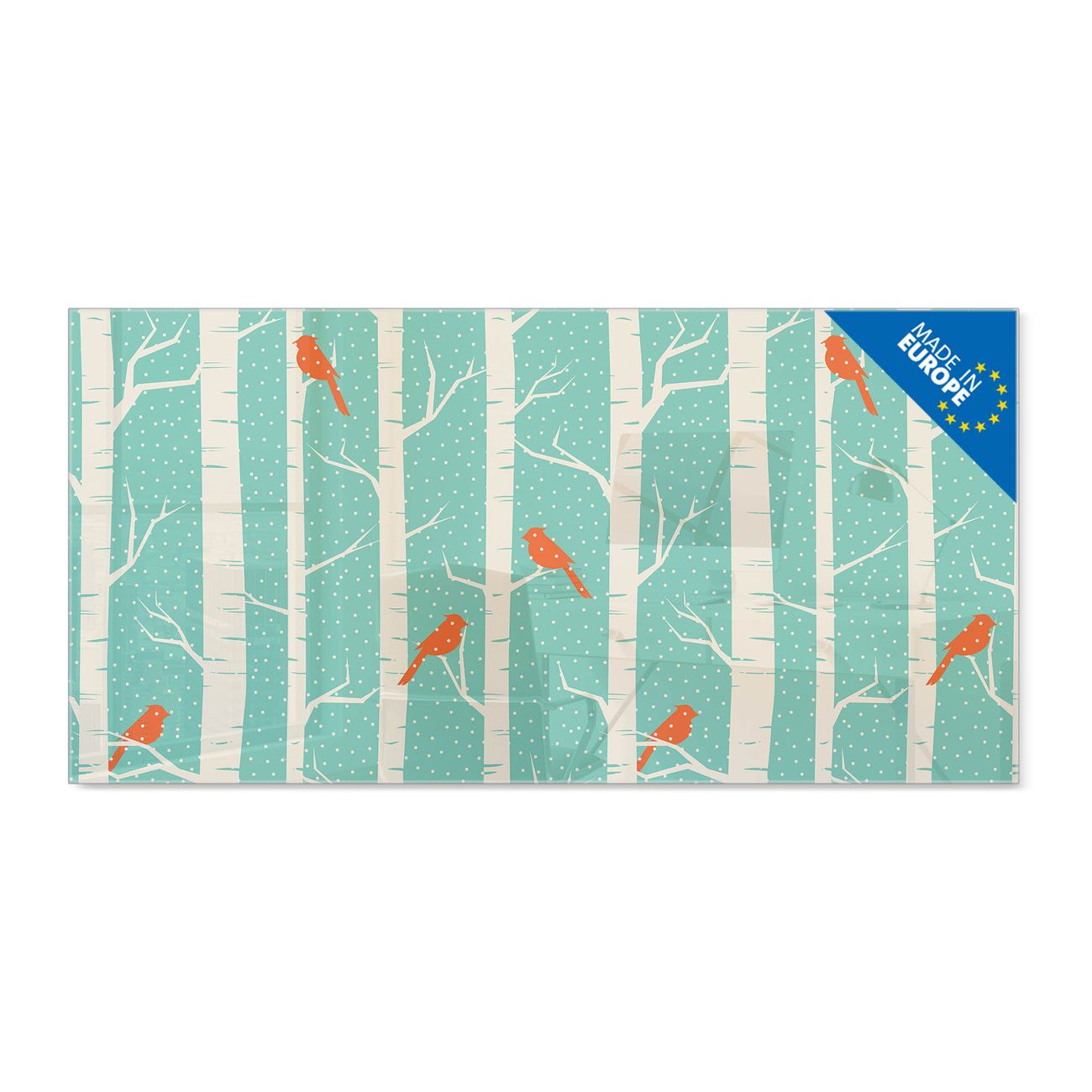 Glas Magnettafel im Querformat Motiv Wintervögel
