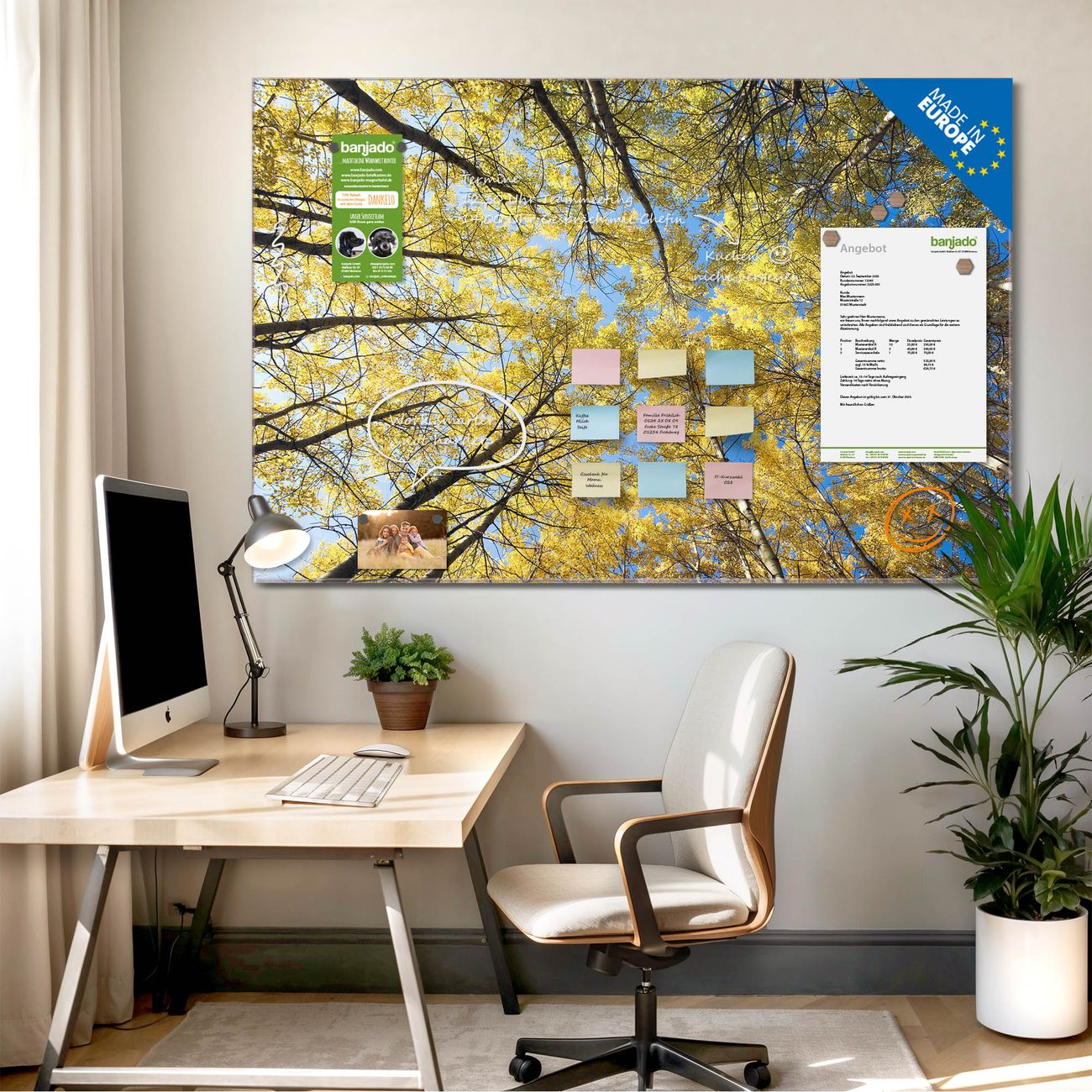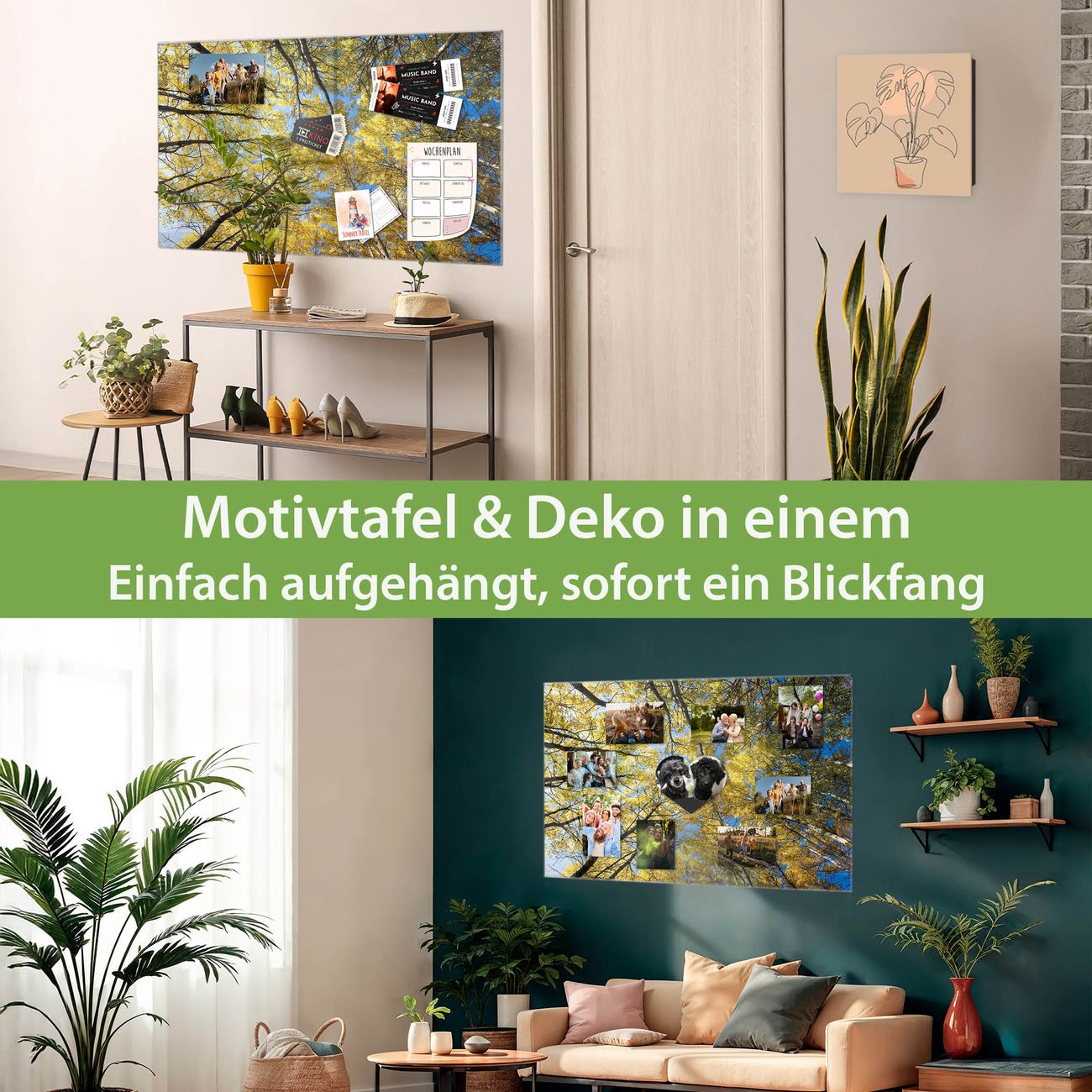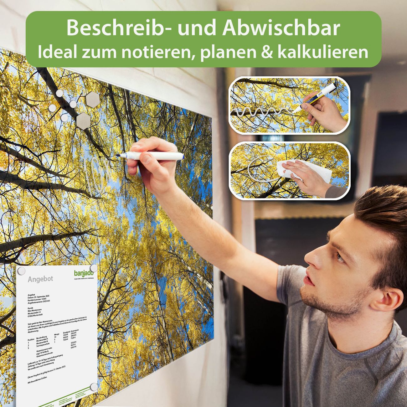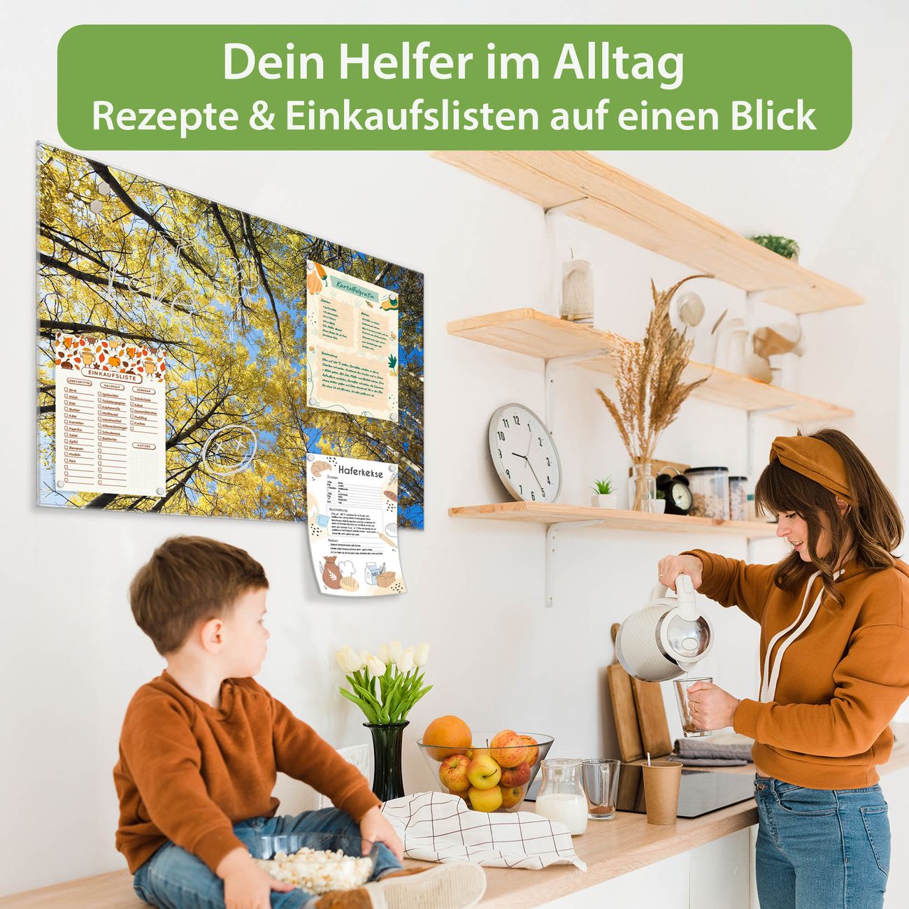 Die banjado Glas Magnettafel mit dem Motiv Motiv Wipfel verbindet Funktionalität mit Stil. Sie ersetzt das Zettelchaos durch klare Strukturen und bringt dabei eine warme, natürliche Atmosphäre in Ihr Zuhause. Ob im Büro, in der Küche oder im Eingangsbereich - dieses Design-Board zieht Blicke an und sorgt für Ordnung mit Charakter.