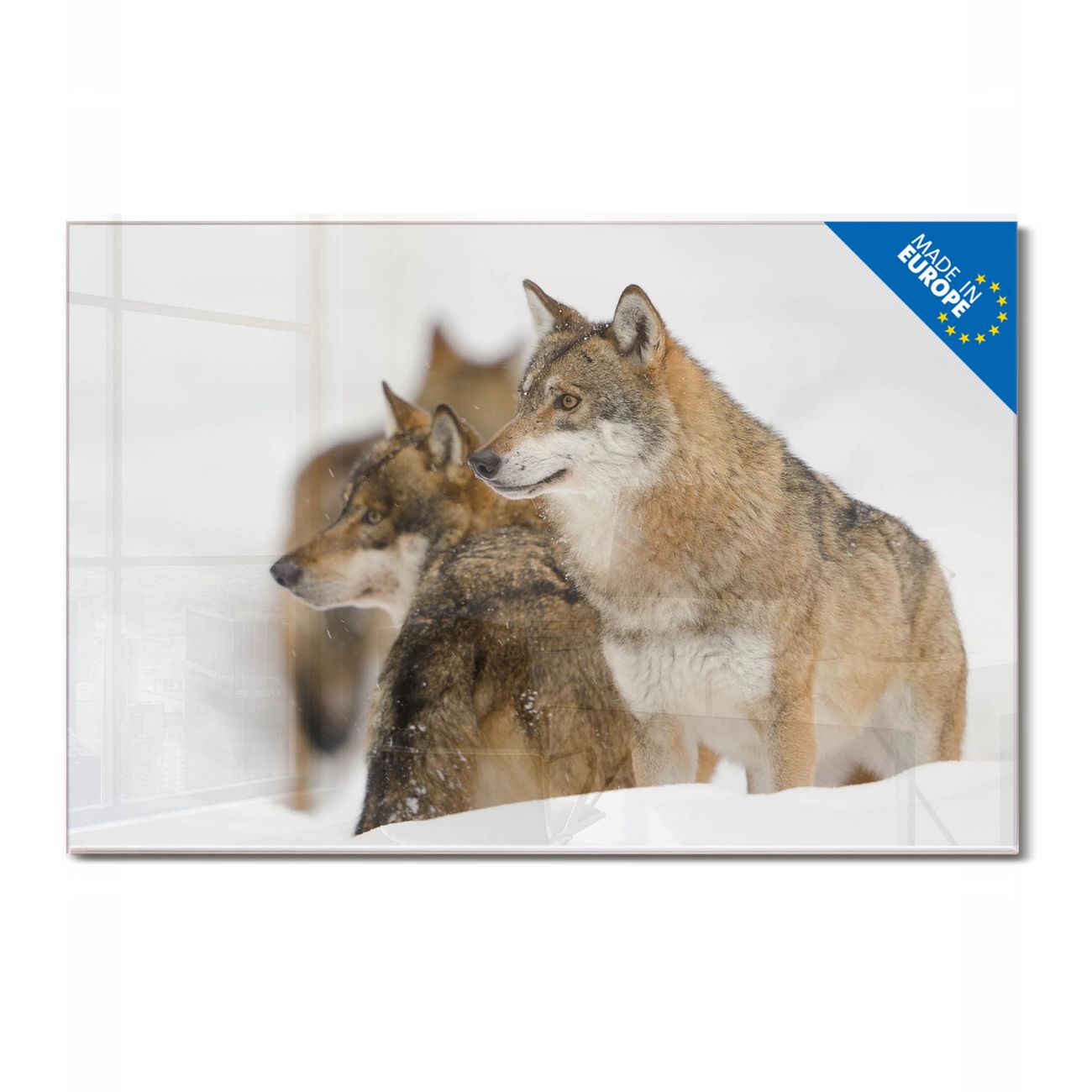 Glas Magnettafel im Querformat Motiv Wölfe