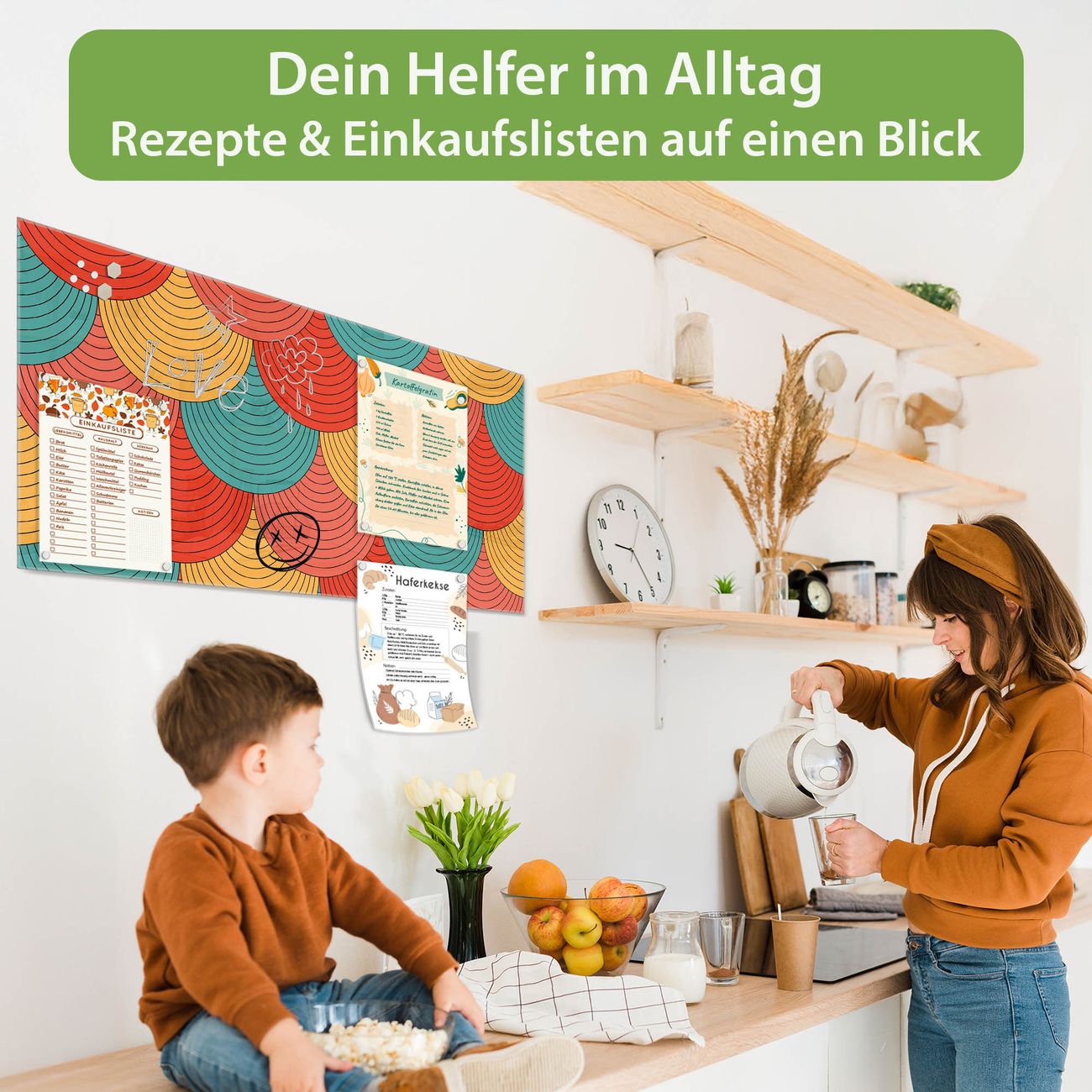 Auf der glatten Glasoberfläche lassen sich Termine, Rezepte oder Notizen ganz einfach mit Kreidestiften festhalten und rückstandslos entfernen. Starke Neodym-Magnete halten Ihre wichtigsten Erinnerungen sicher an Ort und Stelle. So entsteht Ihre ganz persönliche Ideenwand - jeden Tag neu.