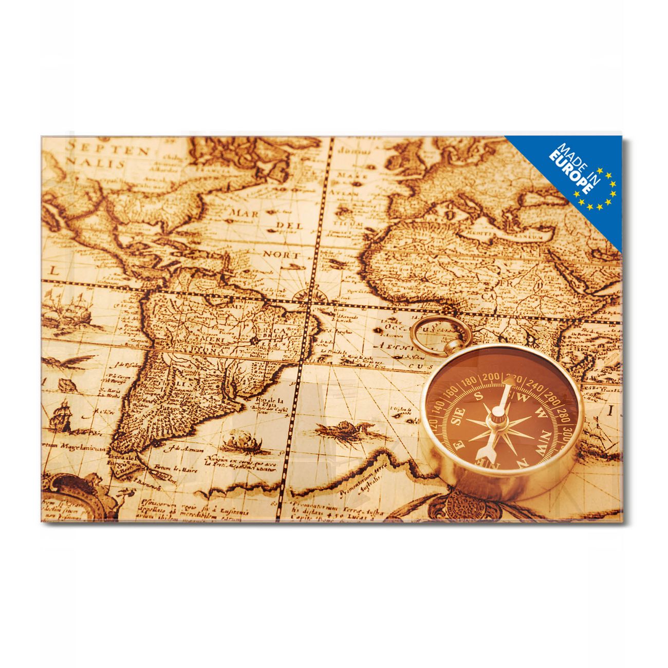 Glas Magnettafel im Querformat Motiv World Map