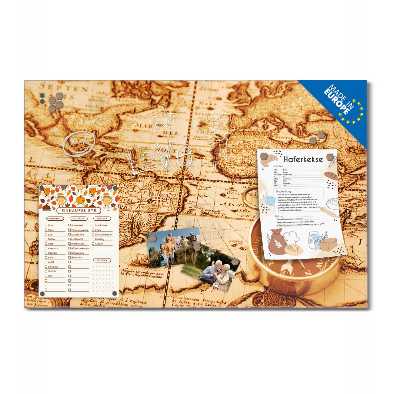 Ein Stück Design, das Ihren Alltag organisiert. Schreiben, heften, inspirieren - alles an einem Ort. Qualität, die man spürt. Montage leicht gemacht. Handwerk mit Herz - veredelt in Sachsen. Einzigartiges Design mit Motiv Motiv World Map Beschreibbare Glasoberfläche, leicht zu reinigen Starke Magnetkraft durch Stahlrückwand Inklusive 4 Neodym-Magneten Flexible Montageoptionen Handveredelt in Sachsen - Qualität, die bleibt