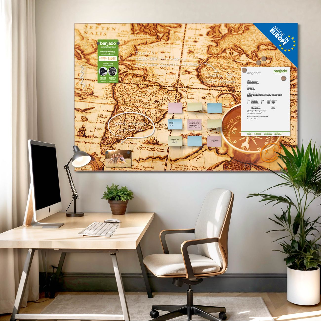 Jede Glas Magnettafel wird in unserer Werkstatt von Hand gefertigt und sorgfältig geprüft. So erhalten Sie ein echtes Qualitätsprodukt, das Funktion und Ästhetik perfekt vereint.?? Warum banjado?