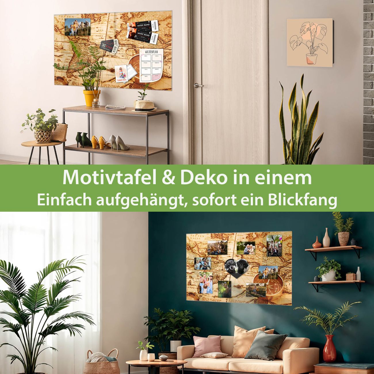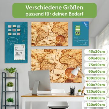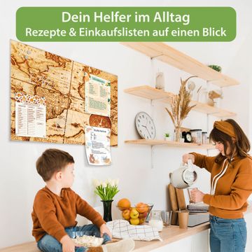 Die banjado Glas Magnettafel mit dem Motiv Motiv World Map verbindet Funktionalität mit Stil. Sie ersetzt das Zettelchaos durch klare Strukturen und bringt dabei eine warme, natürliche Atmosphäre in Ihr Zuhause. Ob im Büro, in der Küche oder im Eingangsbereich - dieses Design-Board zieht Blicke an und sorgt für Ordnung mit Charakter.