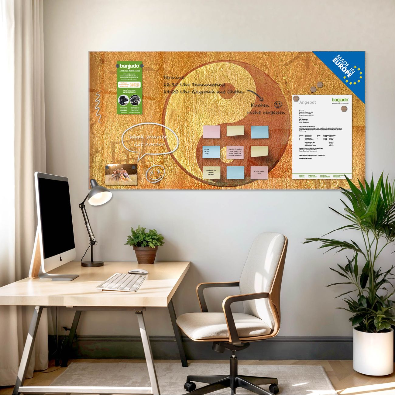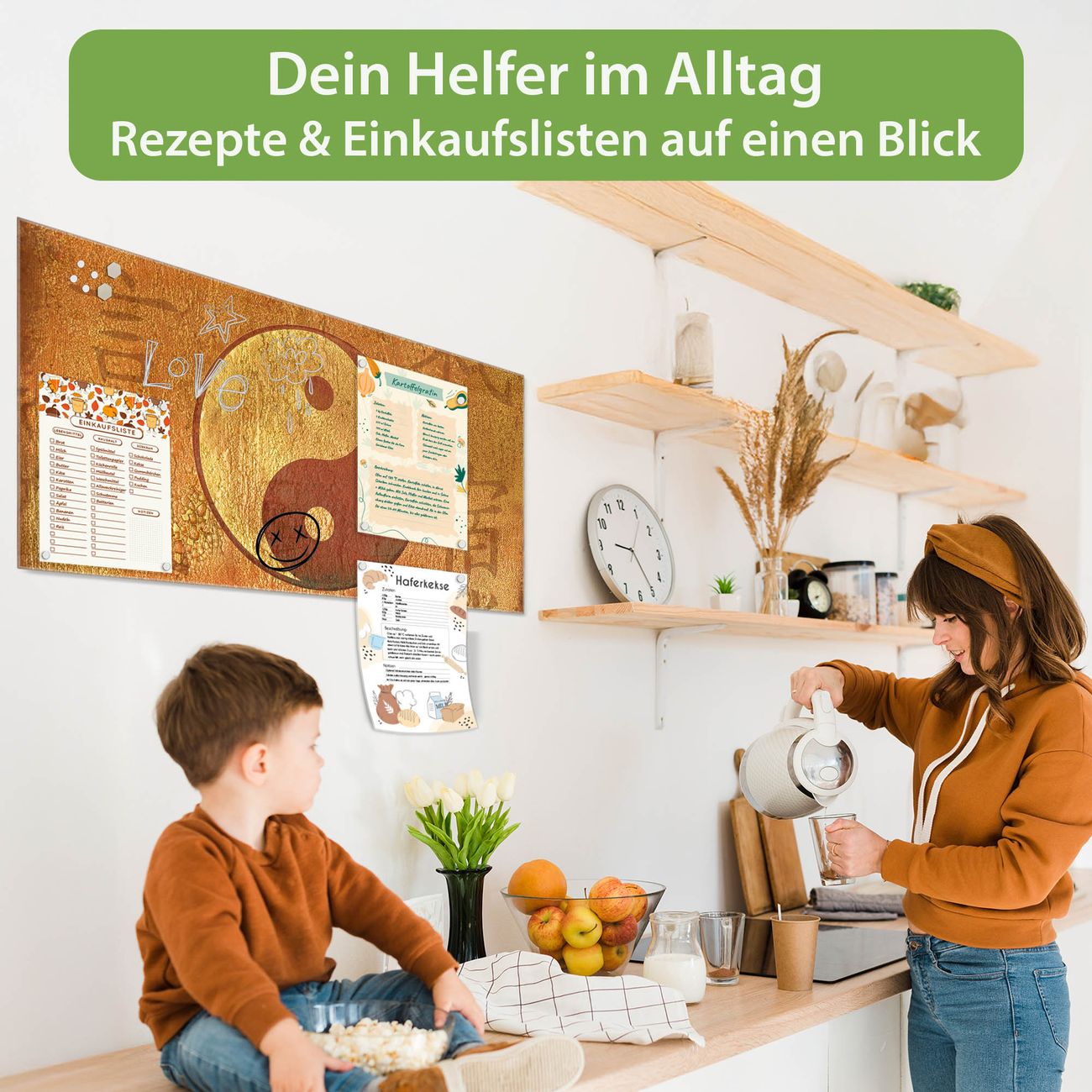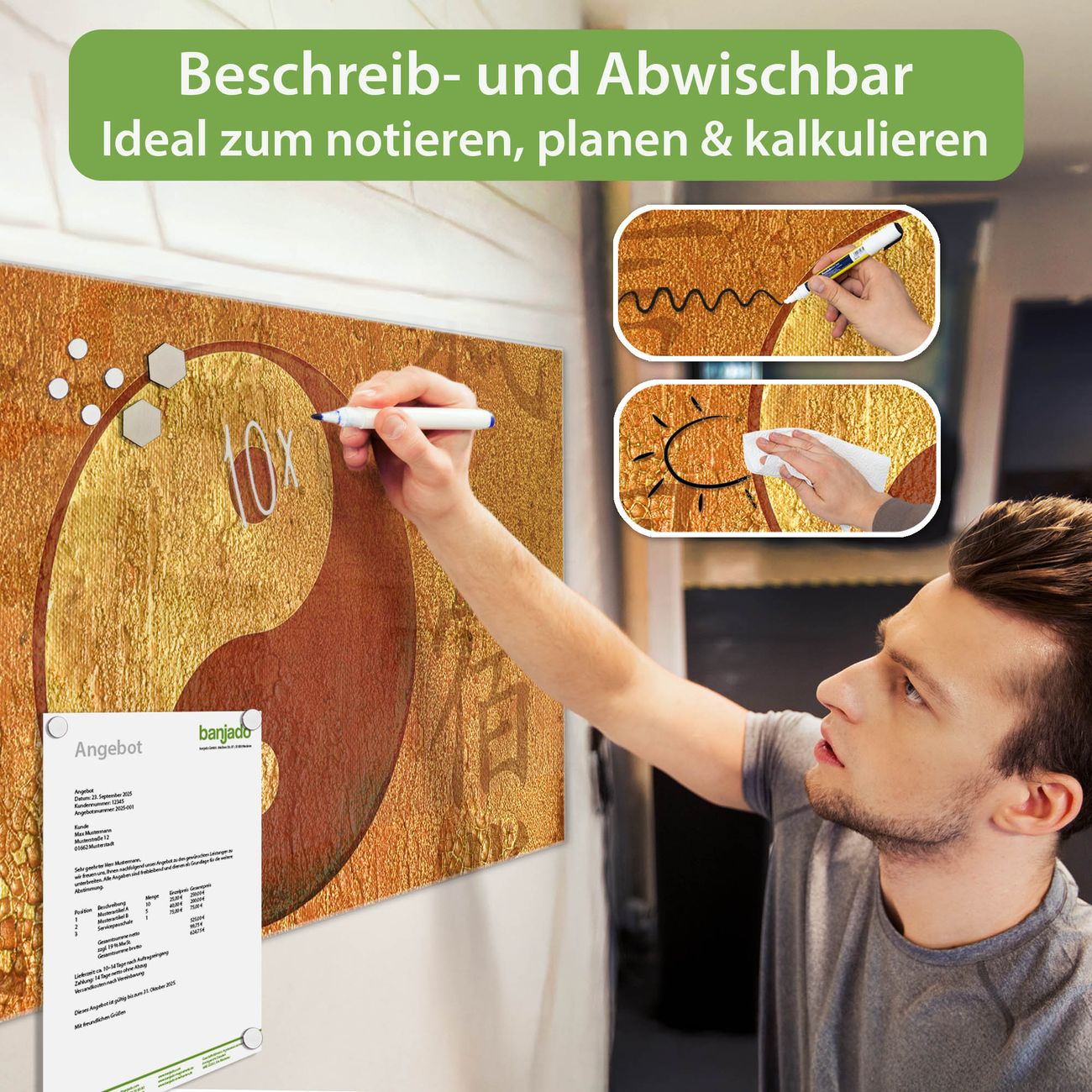 Die banjado Glas Magnettafel mit dem Motiv Motiv Yin Yang verbindet Funktionalität mit Stil. Sie ersetzt das Zettelchaos durch klare Strukturen und bringt dabei eine warme, natürliche Atmosphäre in Ihr Zuhause. Ob im Büro, in der Küche oder im Eingangsbereich - dieses Design-Board zieht Blicke an und sorgt für Ordnung mit Charakter.
