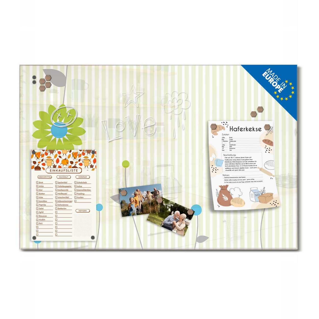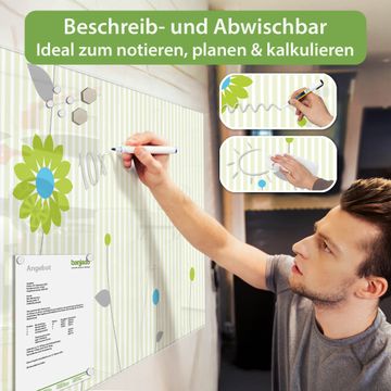Auf der glatten Glasoberfläche lassen sich Termine, Rezepte oder Notizen ganz einfach mit Kreidestiften festhalten und rückstandslos entfernen. Starke Neodym-Magnete halten Ihre wichtigsten Erinnerungen sicher an Ort und Stelle. So entsteht Ihre ganz persönliche Ideenwand - jeden Tag neu.