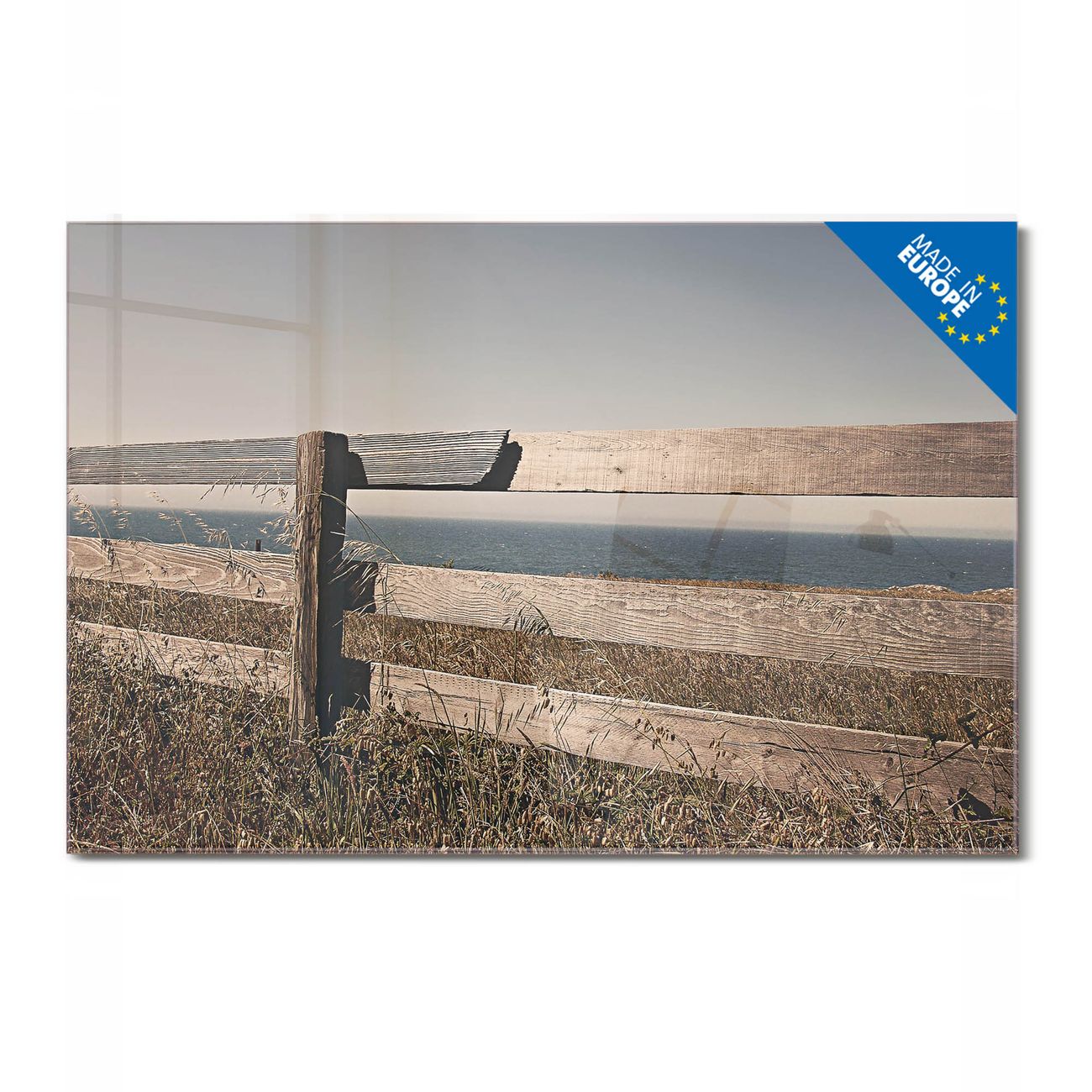 Glas Magnettafel im Querformat Motiv Zaun am Meer
