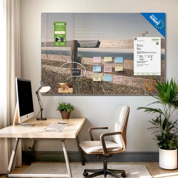 Die banjado Glas Magnettafel mit dem Motiv Motiv Zaun am Meer verbindet Funktionalität mit Stil. Sie ersetzt das Zettelchaos durch klare Strukturen und bringt dabei eine warme, natürliche Atmosphäre in Ihr Zuhause. Ob im Büro, in der Küche oder im Eingangsbereich - dieses Design-Board zieht Blicke an und sorgt für Ordnung mit Charakter.