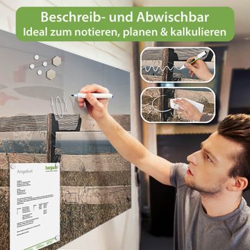 Auf der glatten Glasoberfläche lassen sich Termine, Rezepte oder Notizen ganz einfach mit Kreidestiften festhalten und rückstandslos entfernen. Starke Neodym-Magnete halten Ihre wichtigsten Erinnerungen sicher an Ort und Stelle. So entsteht Ihre ganz persönliche Ideenwand - jeden Tag neu.