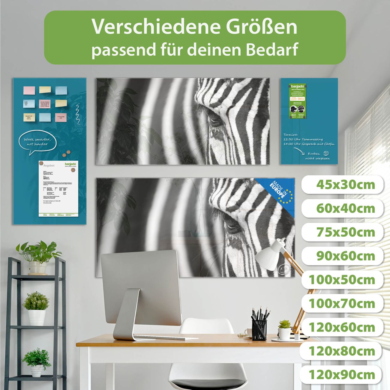 Ein Stück Design, das Ihren Alltag organisiert. Schreiben, heften, inspirieren - alles an einem Ort. Qualität, die man spürt. Montage leicht gemacht. Handwerk mit Herz - veredelt in Sachsen. Einzigartiges Design mit Motiv Motiv Zebra En Face Beschreibbare Glasoberfläche, leicht zu reinigen Starke Magnetkraft durch Stahlrückwand Inklusive 4 Neodym-Magneten Flexible Montageoptionen Handveredelt in Sachsen - Qualität, die bleibt