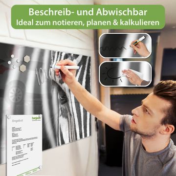 Die banjado Glas Magnettafel mit dem Motiv Motiv Zebra En Face verbindet Funktionalität mit Stil. Sie ersetzt das Zettelchaos durch klare Strukturen und bringt dabei eine warme, natürliche Atmosphäre in Ihr Zuhause. Ob im Büro, in der Küche oder im Eingangsbereich - dieses Design-Board zieht Blicke an und sorgt für Ordnung mit Charakter.